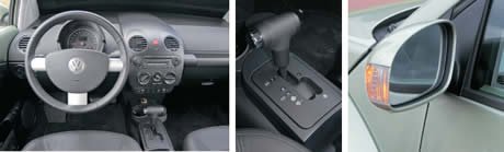 No interior, o New Beetle guarda pouca semelhança com seu antecessor. Os desenhistas do centro de estilo da Volkswagen na Califórnia deixaram ao velocímetro circular central a missão de fazer uma ligação emotiva com o carrinho dos anos 50. Mas a alavanca do câmbio automático de seis marchas, no lugar do mecânico de quatro marchas (com a primeira não-sincronizada), não deixa espaço para dúvidas: esse não é mais um Fusca