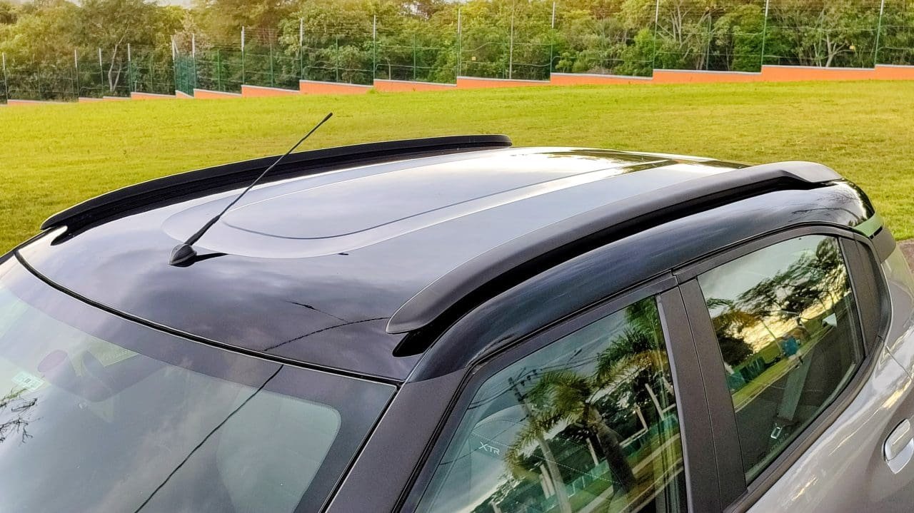 Luz de porta-luvas e comandos dos vidros no lugar certo, aliás, são melhorias aplicadas em boa parte da linha C3 2026. Vieram junto de um acabamento mais refinado na cabine: esse XTR tem couro sintético no painel e nas laterais de portas dianteiras, um avanço para o tão simples hatch. E aqui também estão presentes adesivos e emblemas especiais pela carroceria, bem como pneus de uso misto (Pirelli Scorpion ATR), que deixam o XTR mais parrudo. Sua base é na Feel 1.0 manual, R$ 3 mil mais barata.