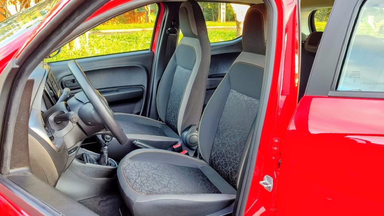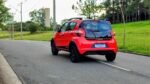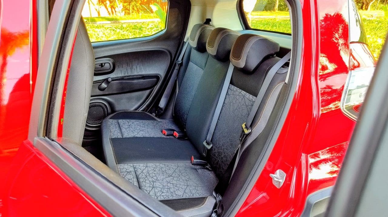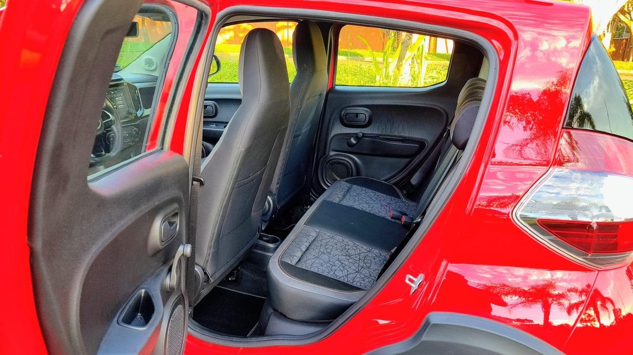 Mas, óbvio que, com 3,5 m de comprimento, não dá para pedir muito do carrinho. É bom para dois adultos na frente (podem até ser de grande estatura, como eu), e duas crianças pequenas no banco traseiro. Dois adultos, ali, já sofrem com a falta de espaço para pernas, pés e joelhos, principalmente, afinal o teto alto é democrático. É um hatch pequeno, urbano, para não muitas pessoas a bordo. No porta-malas, apenas 200 litros declarados.
