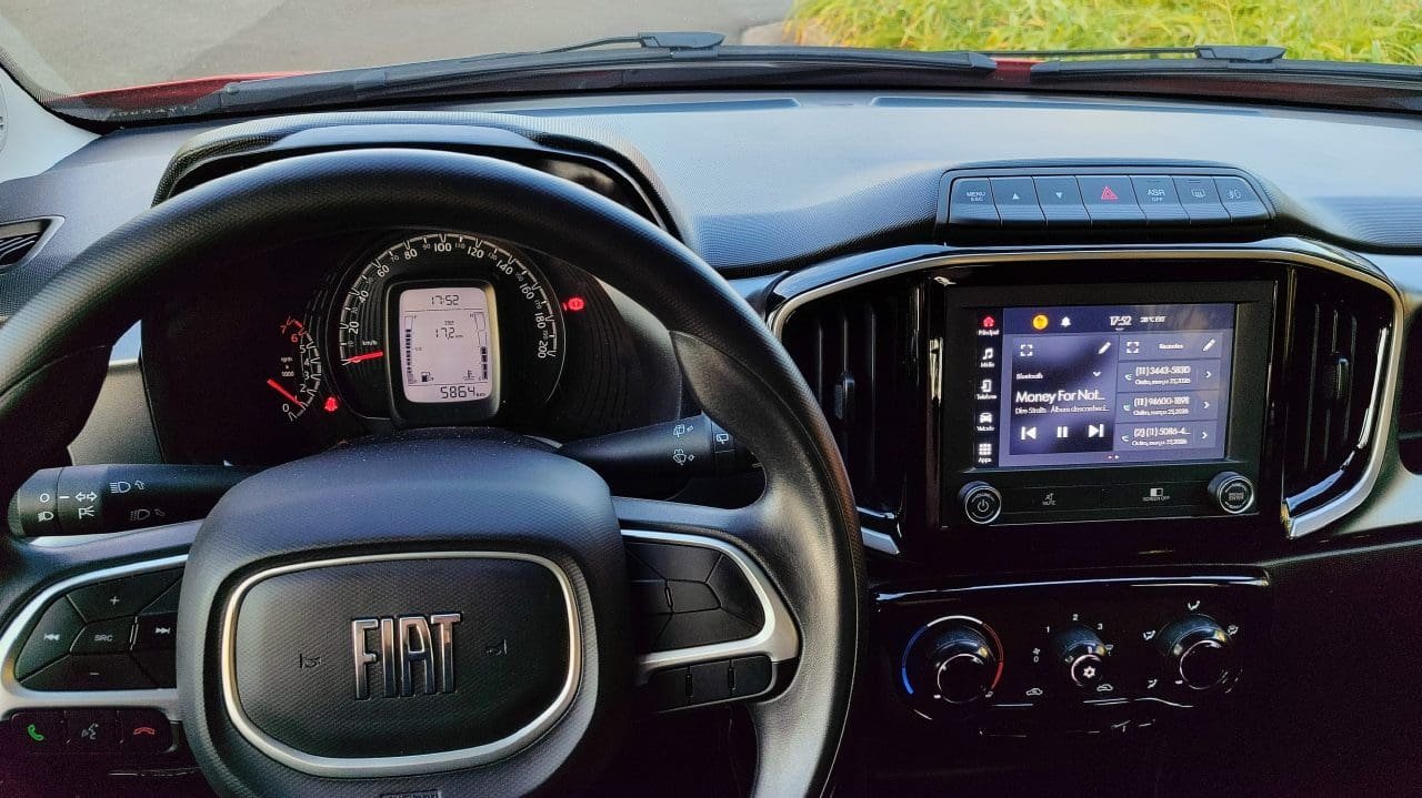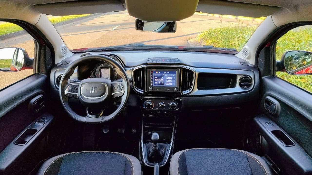 Falando em tamanho, com 1,87 m de altura, logo pensei no aperto que passaria a bordo do Fiat Mobi como motorista. Não dirigia o carro há um bom tempo e não lembrava como era sua vida a bordo. Surpresa: o painel de Strada, com base um pouco mais alta, garantiu mais espaço aos meus joelhos, e a direção regulável permitiu um posto de condução mais ergonômico.