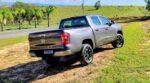 Suspensão? Outra. Ainda pula, como em qualquer caminhonete com feixe de molas traseiro, mas mostra calibração infinitamente mais esperta. Mais capaz de absorver a buraqueira, mais quieta e que melhora, e muito, a dinâmica da Titano em curvas rápidas, frenagens bruscas e afins. Só o curso do conjunto dianteiro que se mostrou curiosamente curto: dependendo da velocidade que enfrentava um obstáculo, como valetas ou quebra-molas, já batia seco, dando o chamado “fim de curso”.