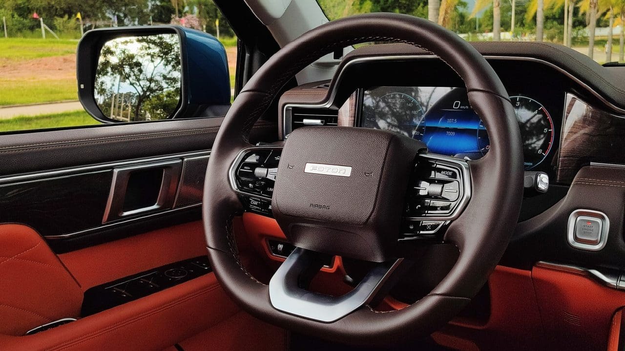 Essa Tunland V9 vem mais recheada, com alguns itens de conforto e comodidade extras (como teto-solar panorâmico, resfriamento dos bancos dianteiros ou memória de posição para o motorista), e, principalmente, mais assistentes inteligentes de condução no pacote ADAS. É bacana pelos extras que oferece, mas, ainda assim, as tecnologias de condução precisam ser mais lapidadas pela Foton: alertas falsos, ações anti-colisão extremas e leituras erradas são mais frequentes do que deveriam.