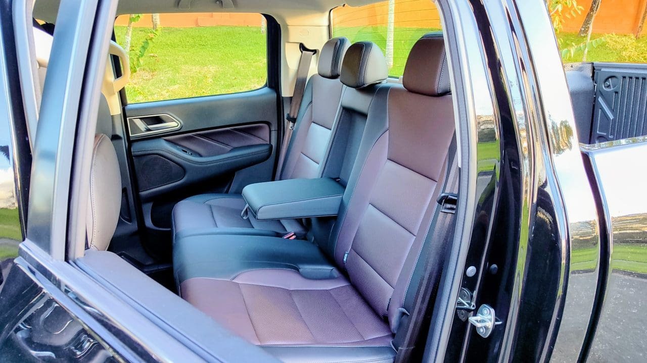 Como é grandalhona perante outras rivais, como a Toyota Hilux, a P30 acaba tendo sobras boas no espaço interno: cinco se acomodam com relativo conforto a bordo dela, contando com luzes de leitura, apoio de braço, saídas de ar e portas USB, todos luxos dedicados à segunda fileira. Lá atrás, na caçamba, há revestimento do compartimento, quatro pontos de amarração de carga e tampa com dois amortecedores. Capota marítima e santantônio são acessórios.