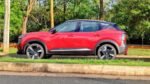 Para muita gente, o design conta a favor. Por mais que as rodas aro 19 com pneus de perfil baixo deixem ele um pouquinho mais áspero no rodar, o jogo cai bem na estética geral do carro, que é estiloso e elegante, especialmente nessa cor vermelha metálica. É um dos mais bem resolvidos da categoria no quesito “desenho”, e o público deixa isso claro torcendo pescoços e arregalando olhos para ver o Kicks Platinum melhor. Bonito ele é.