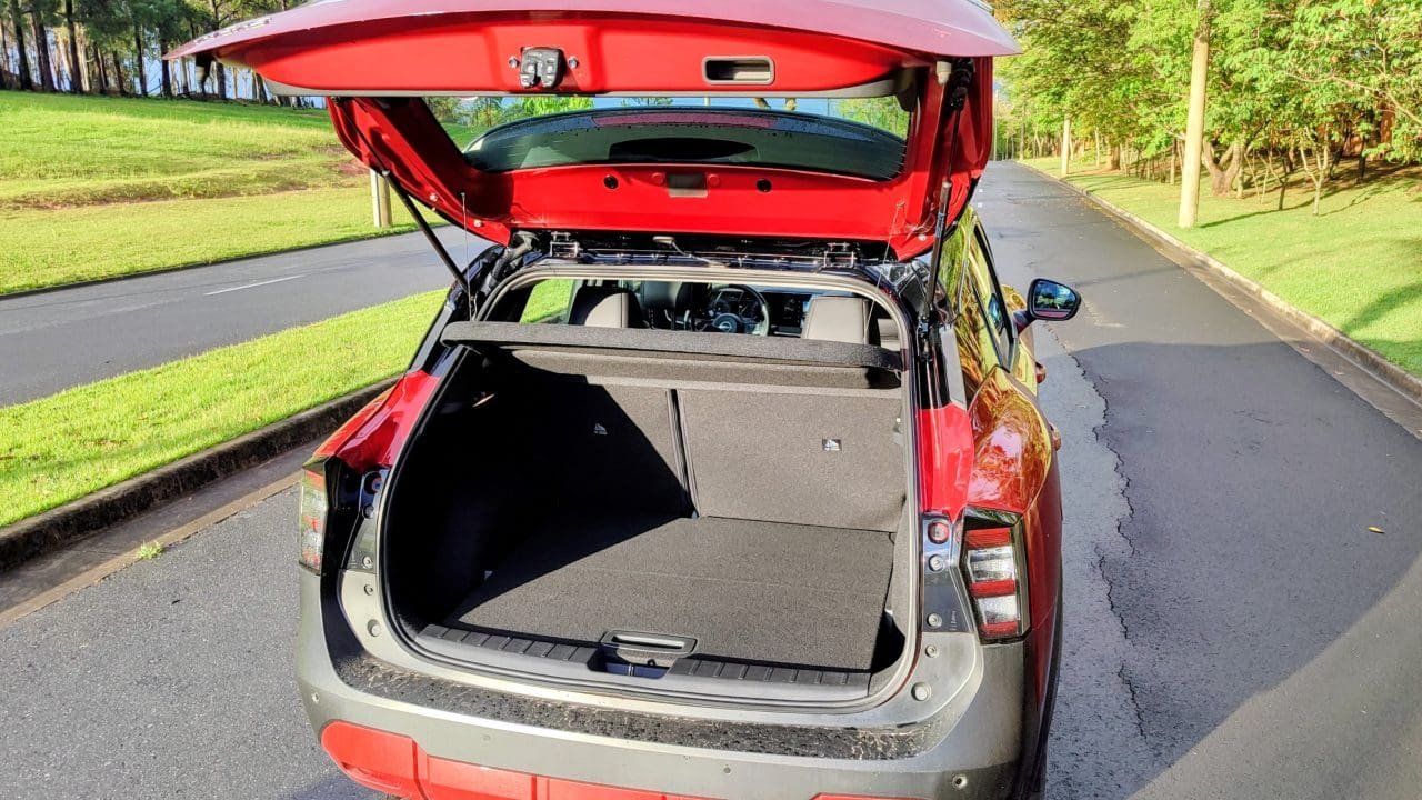 Com a carroceria maior, também ganha muitos pontos em espaço interno. Quatro adultos grandes vão bem acomodados nele, sem sofrer com aperto nas pernas, ombros ou cabeça. Se você tem a primeira geração do Kicks como referência em espaço interno, saiba que essa ficou ainda melhor. E o porta-malas, maior que o de Compass ou Corolla Cross, bebe da mesma fonte: são 470 litros de capacidade. Mancada só não oferecer tampa elétrica nessa versão…