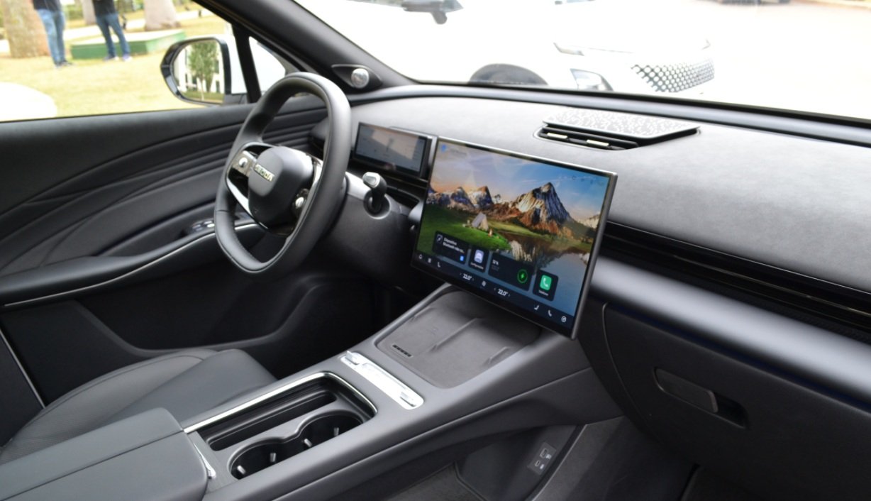 Por dentro, há uma tela multimídia de 15,6 polegadas UHD 2.5K e painel de instrumentos com visual minimalista. Aqui, nada de botões e até para configurar o retrovisor o motorista irá precisar acessar a tela multimidia. Os sistemas são um pouco confusos até pegar o jeito. A dirigibilidade é suave, com o pedal do acelerador um pouco “molenga” demais.