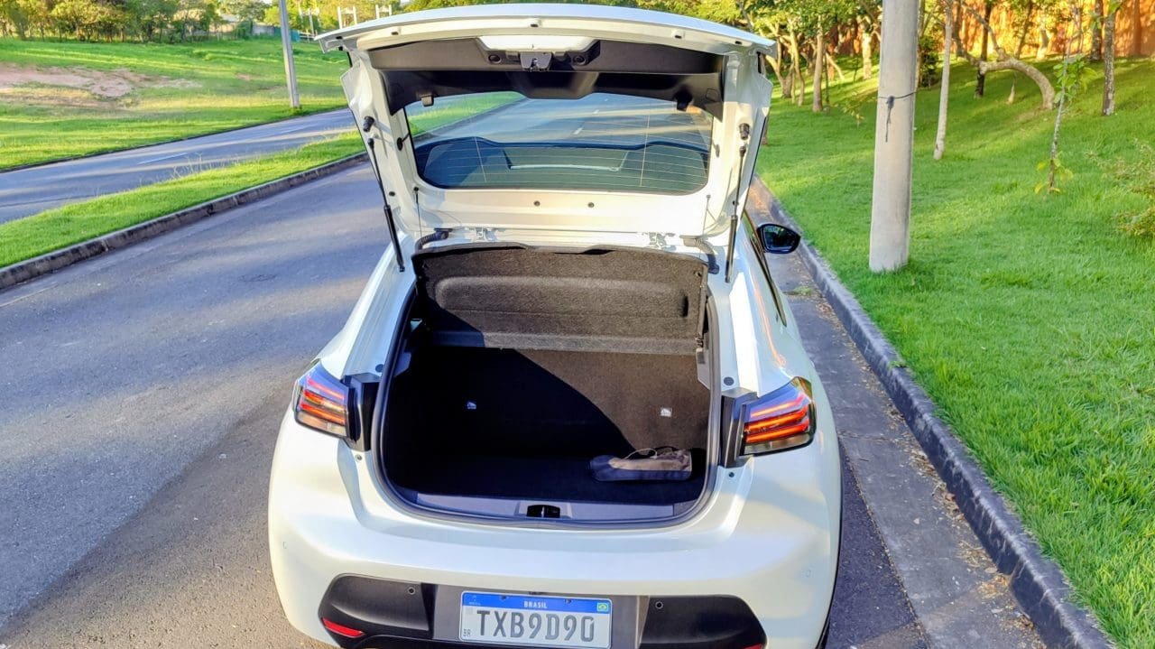 Muito ágil ao volante, o carrinho é destinado à jovens solteiros, ou no máximo casais. É um produto jovial, tanto que aposta nessa pegada mais esportiva, como sugere a sigla da versão GT, um kit aerodinâmico mais pronunciado, as belíssimas rodas aro 17, decorações em preto brilhante pela carroceria e afins. E nem caberia uma família muito maior a bordo dele, afinal o espaço traseiro é limitado, com portas pequenas, teto mais acanhado e vão contido para as pernas. O Peugeot 208 é um carro pequeno para os ocupantes, ainda que o porta-malas vá além dos 300 litros declarados (interessantes).
