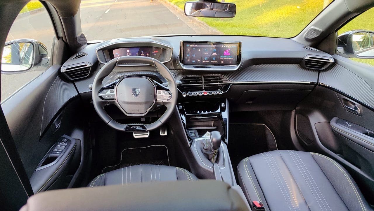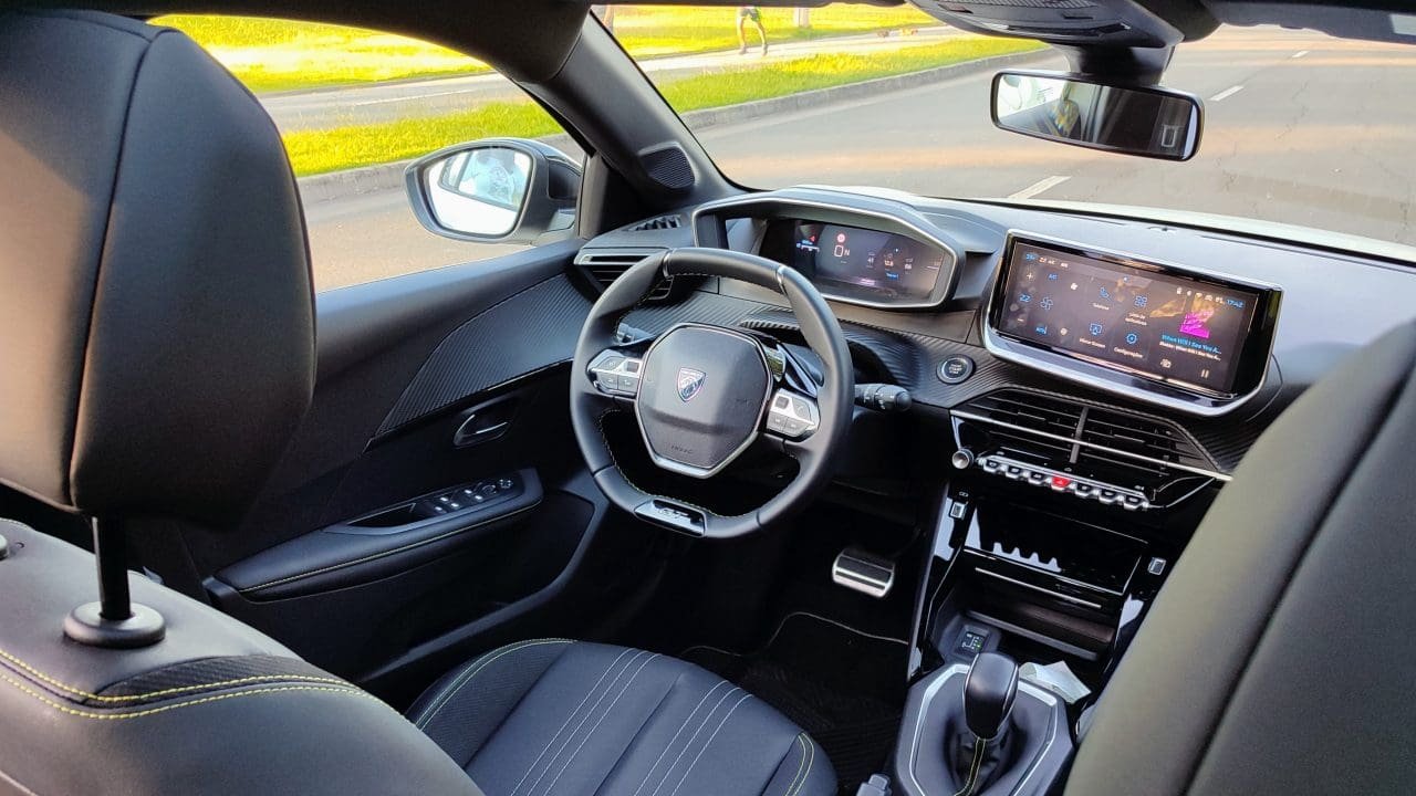 Aproveitando a deixa, seu pacote de série inclui 6 airbags, instrumentação digital, bancos em couro sintético, painel de instrumentos digital de 10 pol., multimídia de 10 pol. com conexões sem fio, sensores de chuva e crepuscular, carregador de celular sem fio, chave presencial e partida por botão, ar digital automático, sensores de estacionamento traseiros, câmera 180º, faróis e lanternas em LED, pacote ADAS com diversas funções, entre outros. Esse Peugeot 208 fica devendo retrovisor interno fotocrômico, sensores de estacionamento dianteiros e portas USB traseiras, principalmente.