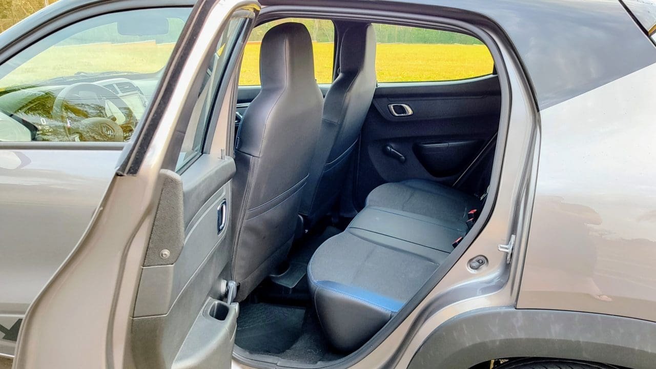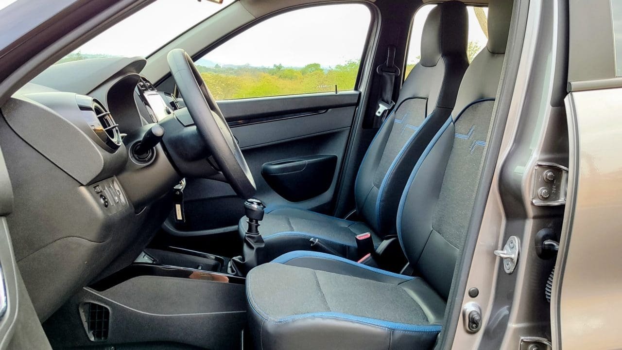 Como sou grande (1,85 m de altura e 120 kg), demorei para me acomodar bem no carrinho. Os bancos estreitos e volante pequeno, ambos sem ajuste de altura, tiram um pouco da liberdade de ergonomia do motorista, assim como a pedaleira pequena e apertada. Mas, o teto alto, portas grandes e alavanca de transmissão alta, assim como os comandos acessíveis no painel, pesaram a favor nessa balança da ergonomia.