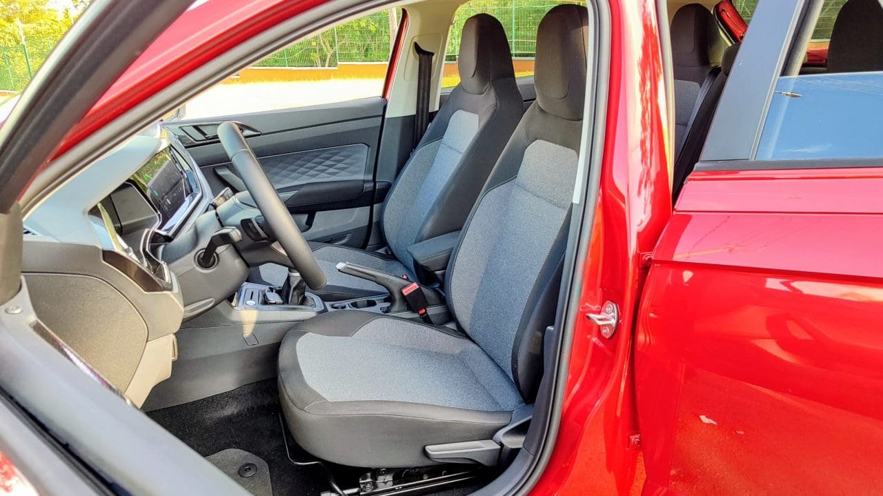 O Polo sempre foi um dos melhores em ergonomia e dinâmica de condução: tem posição de guiar baixa, até um pouco esportiva, com painel, console e laterais de portas envolvendo o condutor. Volante, cinto de segurança e os bancos são ajustáveis em diferentes posições, facilitando bastante na hora de encontrar o melhor posto de condução. Ainda assim, ocupantes maiores podem achar os bancos dianteiros pequenos: são inteiriços, com encosto de cabeça embutido, e assento curto.