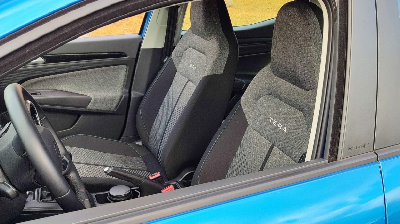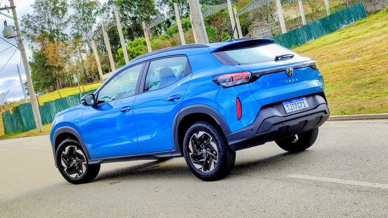 Baixo consumo e boa performance a parte, outra coisa que surpreende positivamente no Tera é que, apesar de ser SUV, ele tem muito em comum com o hatch Polo, do qual deriva. E o Polo, vale falar, tem uma das melhores dinâmicas de condução da categoria, seja pra frenagens, curvas e por aí vai. Apesar de ser mais altinho, com curso maior de suspensões e centro de gravidade mais elevado, o Tera encara curvas rápidas como se fosse um hatch compacto: é seguro e direto. Boa!
