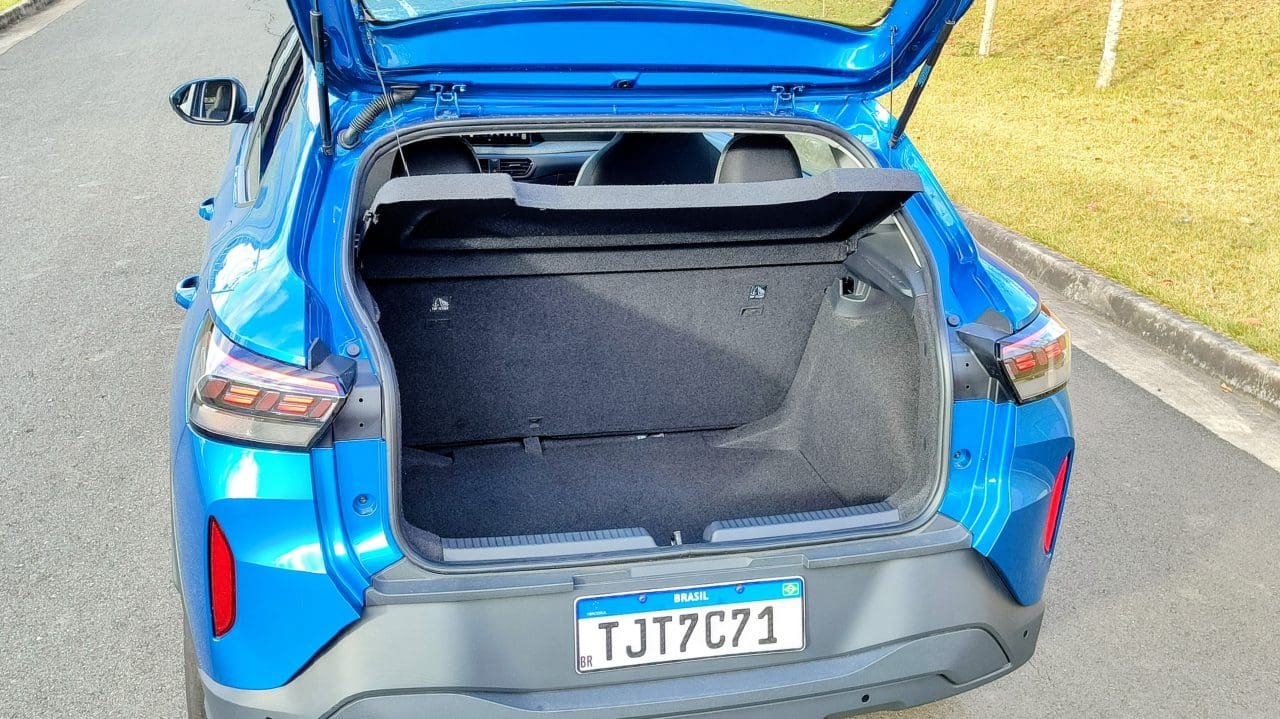 Apesar de quem vai na frente se sentir mais num SUV, com direito até a capô a mostra, atrás o espaço é praticamente igual ao de um hatch compacto: bom por conta do teto alto e arredondado, mas nada surpreendente. Em comparação, a acomodação no Nivus, coupé com o mesmo entre-eixos, é mais complicada atrás, por conta de posicionamento de banco traseiro, queda do teto e encostos dianteiros maiores. No mais, os 350 litros de porta-malas do Tera estão justamente na média do segmento.