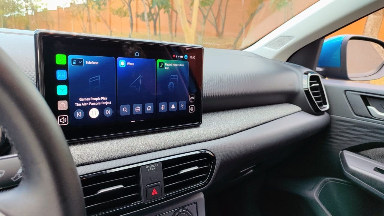 No exemplar avaliado, as rodas diamantadas e a função de internet a bordo são itens opcionais por cerca de R$ 3,4 mil. Tirando o pecado dessa versão vir de fábrica com calotas (feias, por sinal) e apenas quatro alto-falantes, o restante do pacote agrada: painel digital de 8”, central de 10,1”, volante multifuncional, coluna regulável em altura e profundidade, quatro vidros elétricos um-toque, piloto automático com limitador de velocidade, sensores de estacionamento traseiros, faróis em LED com regulagem de altura, retrovisores elétricos com tilt-down direito, ar-condicionado etc.