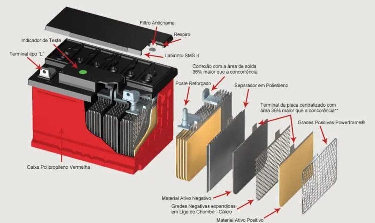 A capacidade em ampère-hora indica por quanto tempo a bateria consegue fornecer energia. Capacidade menor que a recomendada causa falhas na partida e nos sistemas elétricos. Já valores muito acima não trazem benefícios práticos e podem gerar problemas de encaixe e carregamento.