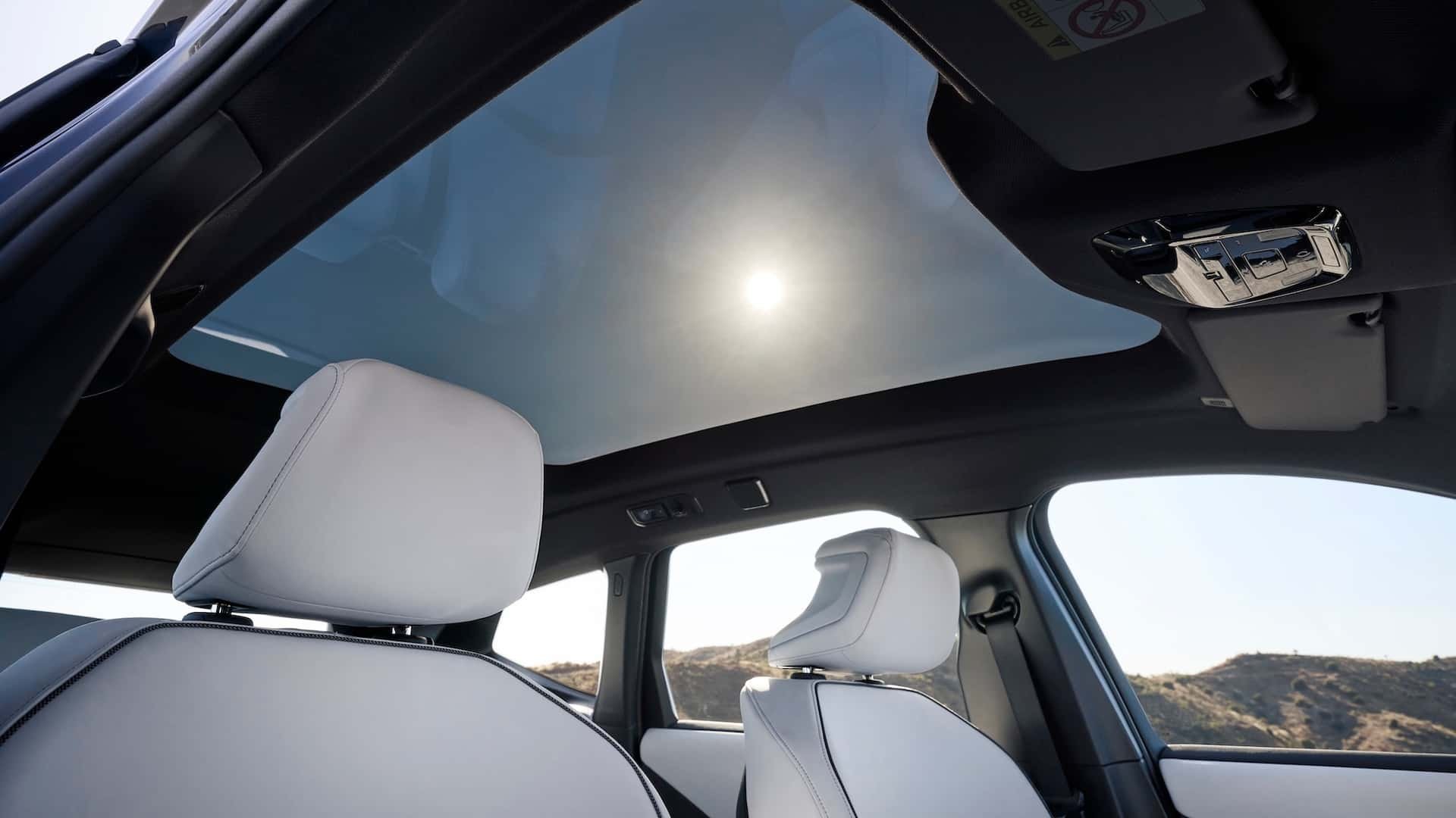 Seu interior segue a mesma escola: totalmente arrojado, com uma enorme tela central com formato desigual entre os lados, e um curioso volante de quatro raios em formato de “+”. Não há um painel de instrumentos, afinal as informações de bordo vão espalhadas numa enorme projeção horizontal que percorre toda a parte dianteira do painel, rente ao parabrisas. Console, bancos e laterais de porta são extremamente minimalistas, inclusive nos acabamentos e forrações.