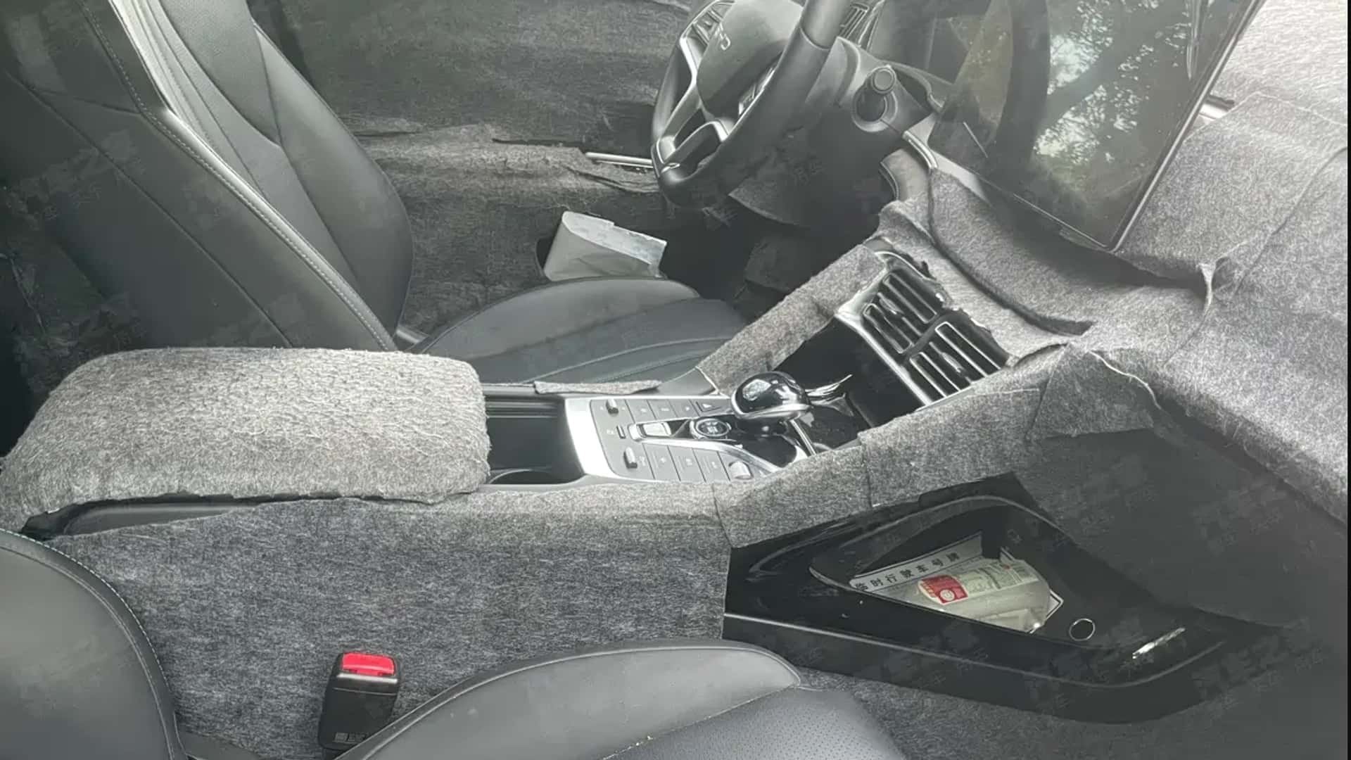 Mas, além da parte de baixo, quem também acabou surgindo nesses flagras foi o tão esperado interior da “Baby-Shark”. E, não por coincidência, ele será muito parecido com o do Song Pro atual. Embora traga um volante mais parrudo, que lembra o da Shark, elementos de painel e laterais de portas remetem aos dos SUVs da marca chinesa. Multimídia rotativa de 12,8”, saídas de ar centrais próximas ao console, andar inferior do console central, bancos inteiriços, joystick da transmissão e teclas centrais são praticamente os mesmos do Song Pro, também.