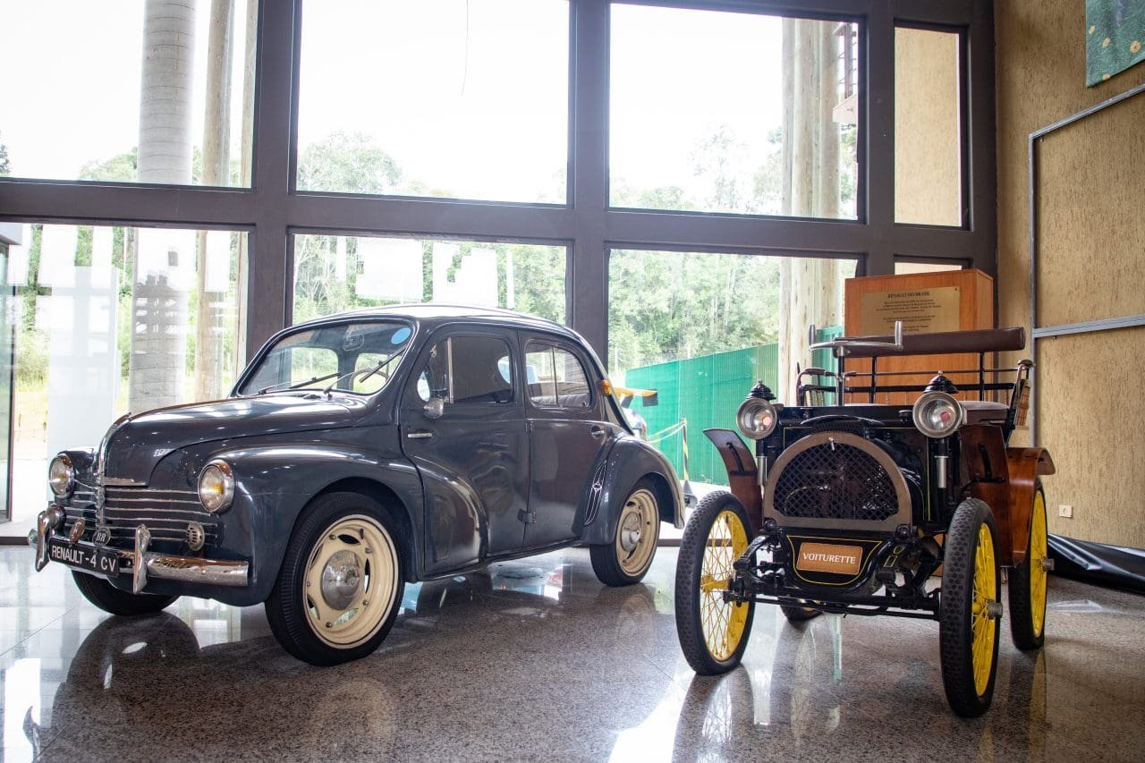Entre os destaques está uma réplica perfeita do Voiturette, primeiro carro criado por Louis Renault em 1898. O modelo original se destacava pela transmissão de três marchas, que permitia encarar ladeiras mais íngremes. A réplica foi construída em 1998, no centenário do carro. Outro exemplar curioso é o Willys Gordini azul impecável, fruto da parceria entre a Willys-Overland do Brasil e a Renault — o Gordini nacional era um Renault fabricado sob licença.