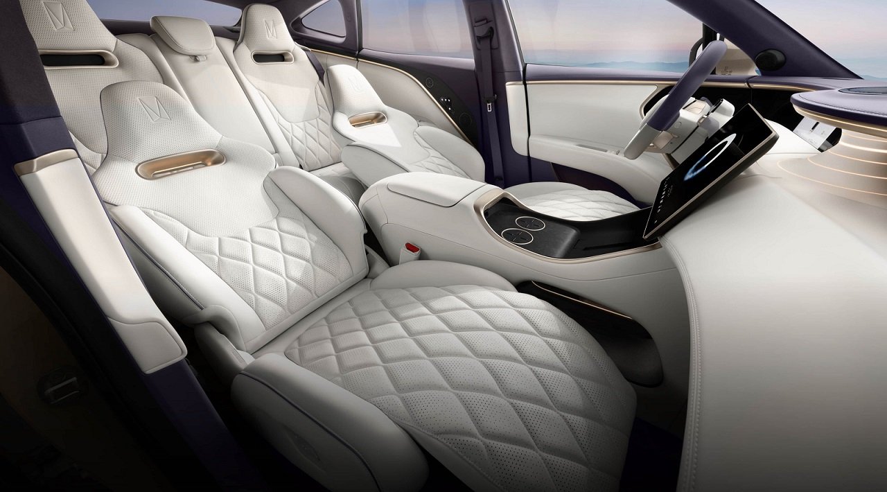 O Avatr 11 está disponível nas cores rosa claro, cinza escuro, branco metálico, branco perolizado, preto metálico e cinza claro. Por dentro, pode ser personalizado nos tons preto, cinza, branco e vermelho. Na opção de quatro assentos, o meio do banco traseiro ganha um largo console com porta-trecos climatizado, ajustes elétricos das poltronas, comandos individuais de áudio e ar-condicionado, e afins.
