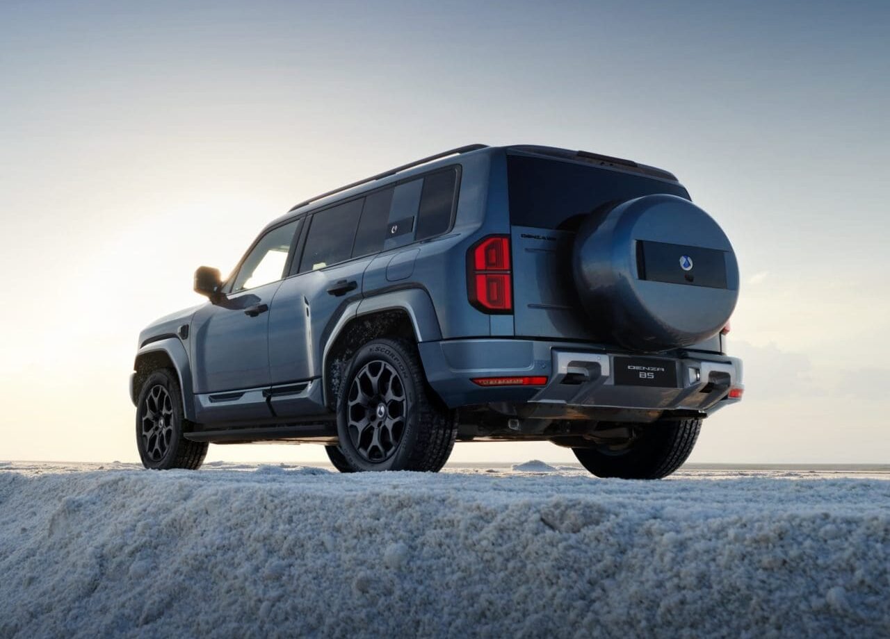 Quadradão, e inspirado em ícones como o Land Rover Defender, ele é feito com chassi separado da carroceria, igual caminhonetes médias e grandes. Falando em tamanho, de parachoque a parachoque, o B5 tem 4,90 m de comprimento, 1,97 m de largura, 1,92 m de altura e, como pede um modelo off-road, entre-eixos menor, de 2,80 m. Generosos ângulos de ataque (35º) e saída (32º), bem como os 22 cm de altura livre do solo e a tração nas quatro rodas, fazem dele um legítimo utilitário aventureiro. Ainda há bloqueio eletrônico dos três diferenciais: frontal, central e traseiro.