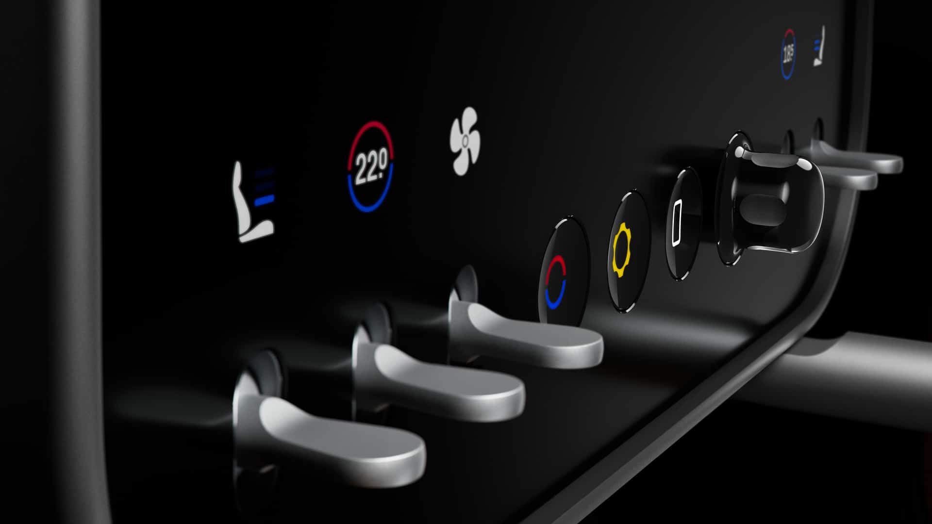 Pelos botões mostrados, é possível afirmar que a Ferrari Luce, além de contar com pacote ADAS (assistentes de condução), também trará ao menos três modos de condução (Range para melhor autonomia, Tour para uso comum, e Perfo para máximo desempenho), bem como outros cinco tipos de terreno selecionáveis (gelo, chuva, pista seca, sport, além da possibilidade de desativar o controle eletrônico de estabilidade (ESP). Outro botão indica o ajuste eletrônico da rigidez dos amortecedores.