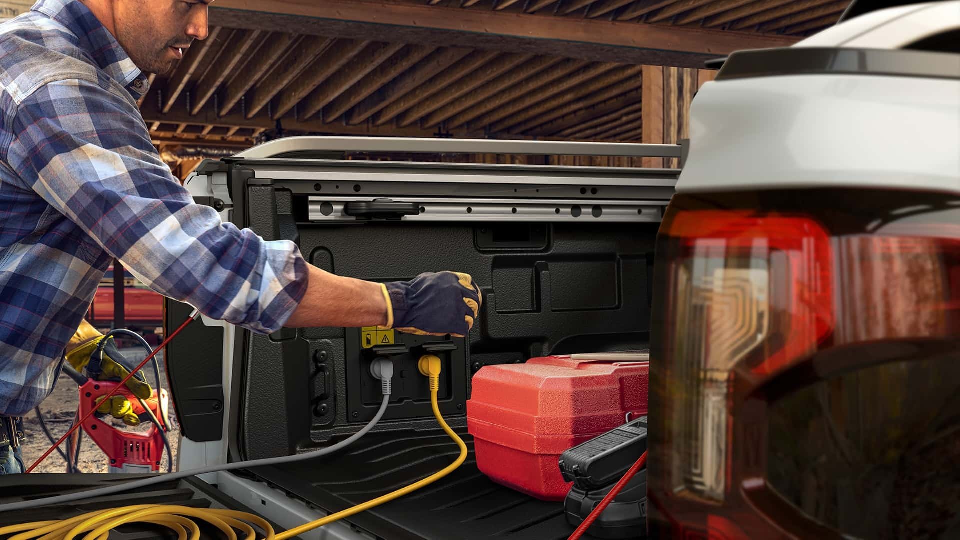 Um dos seus diferenciais é o que a Ford chama de “Pro Power Onboard”, mas que também é conhecido por “V2L” em algumas outras marcas. Trata-se do sistema que permite que o carro se torne uma fonte de energia ambulante, para alimentar ferramentas, eletrodomésticos, aparelhos eletrônicos e por aí vai, dispensando o uso de um gerador estacionário ou mesmo de fontes de energia convencionais.