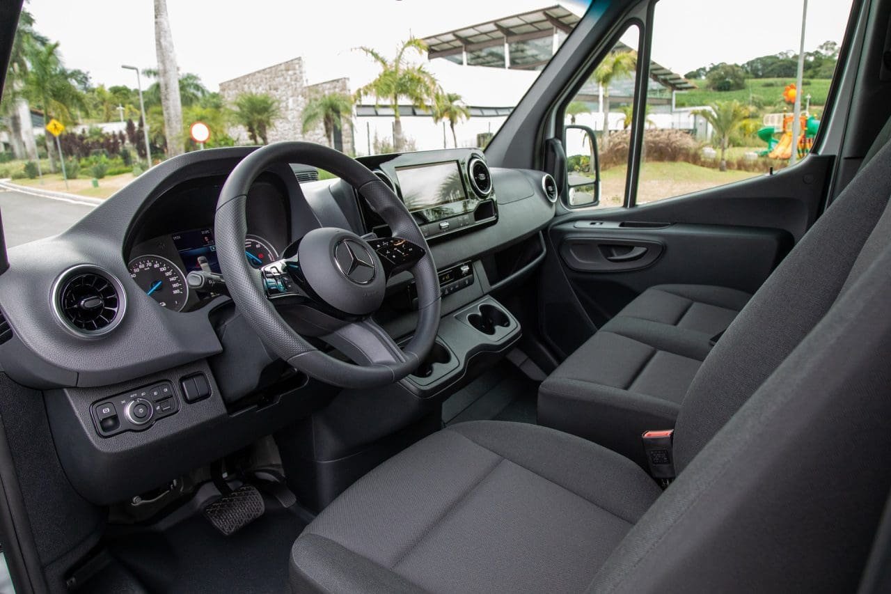 Só a eSprinter, porém, traz de série banco do motorista com aquecimento, sensor de chuva, assistente de permanência na faixa e assistente de ventos laterais. Como diferenciais da Foton, estão painel de instrumentos totalmente digital (12,3 pol.), multimídia maior (12,3 pol.), piloto automático adaptativo (ACC), sensores de estacionamento traseiros, além dos airbags laterais e das rodas de liga-leve.