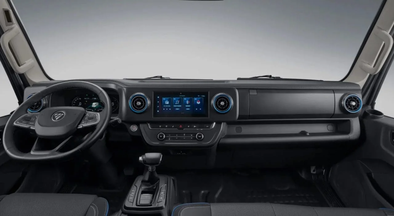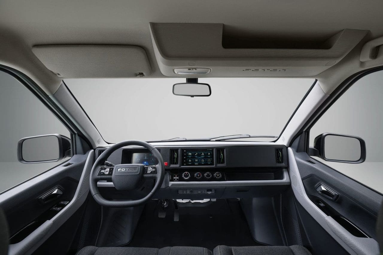 Sua autonomia divulgada ainda é no ciclo WLTP, com 245 km, graças a baterias de 50,2 kWh de capacidade, que podem demorar até 1h10min. para recuperar 80% da energia. Vem com faróis em LED, luzes de neblina, sensor crepuscular, painel de instrumentos digital, rádio AM/FM com Bluetooth e MP3, função V2L (transforma o veículo em um gerador de energia – o cabo será acessório e está em fase final de homologação, diz a Foton), vidros e travas elétricas, retrovisores elétricos, câmera de ré, freio de mão eletromecânico com função Auto Hold, piloto automático e mais.