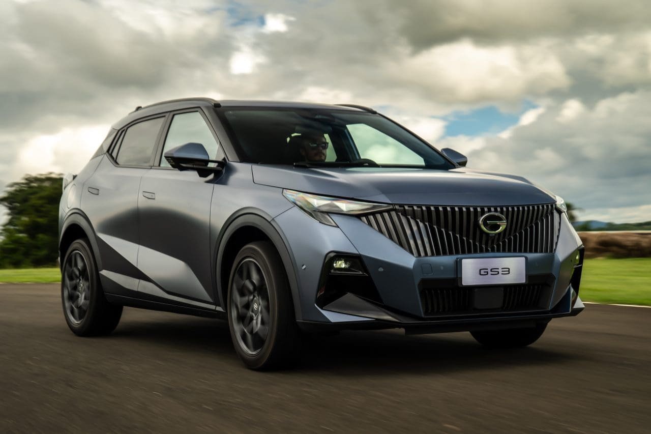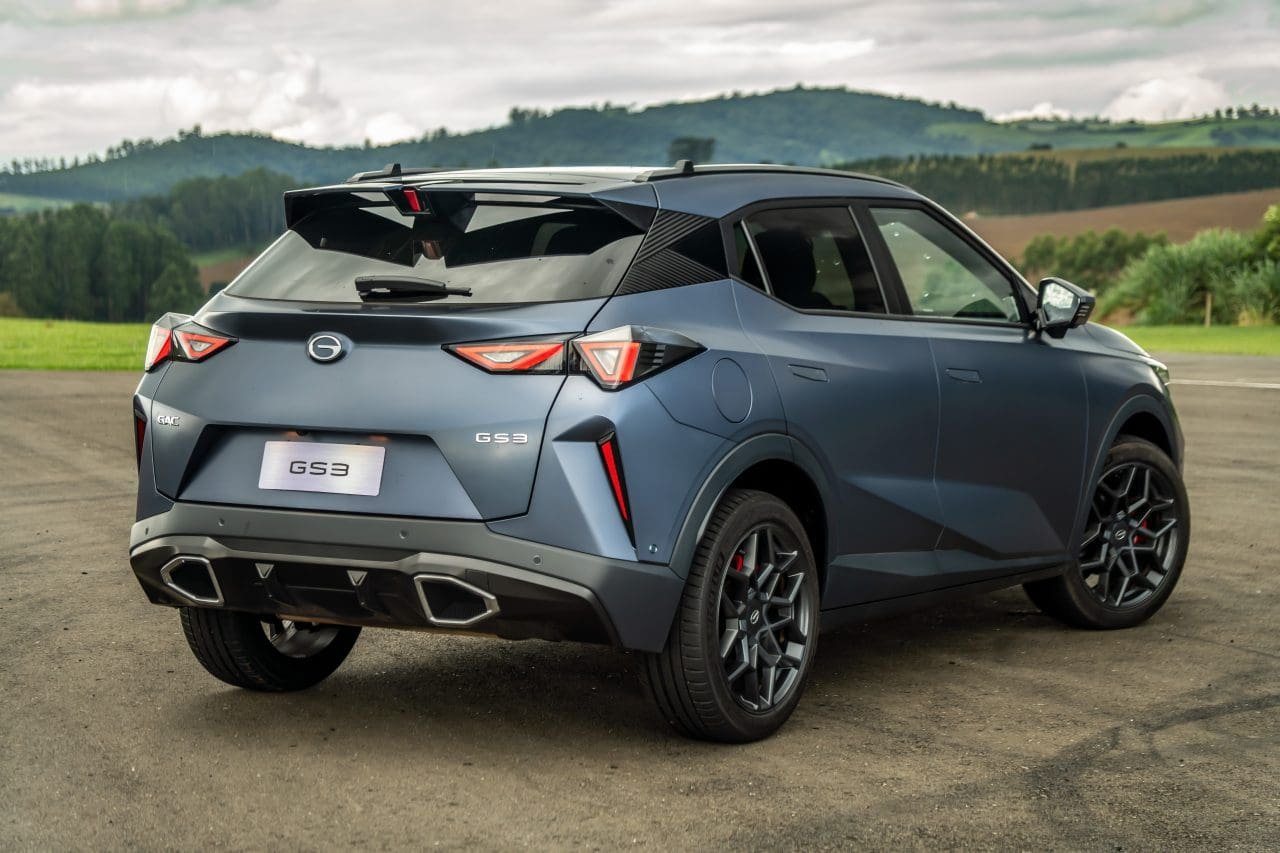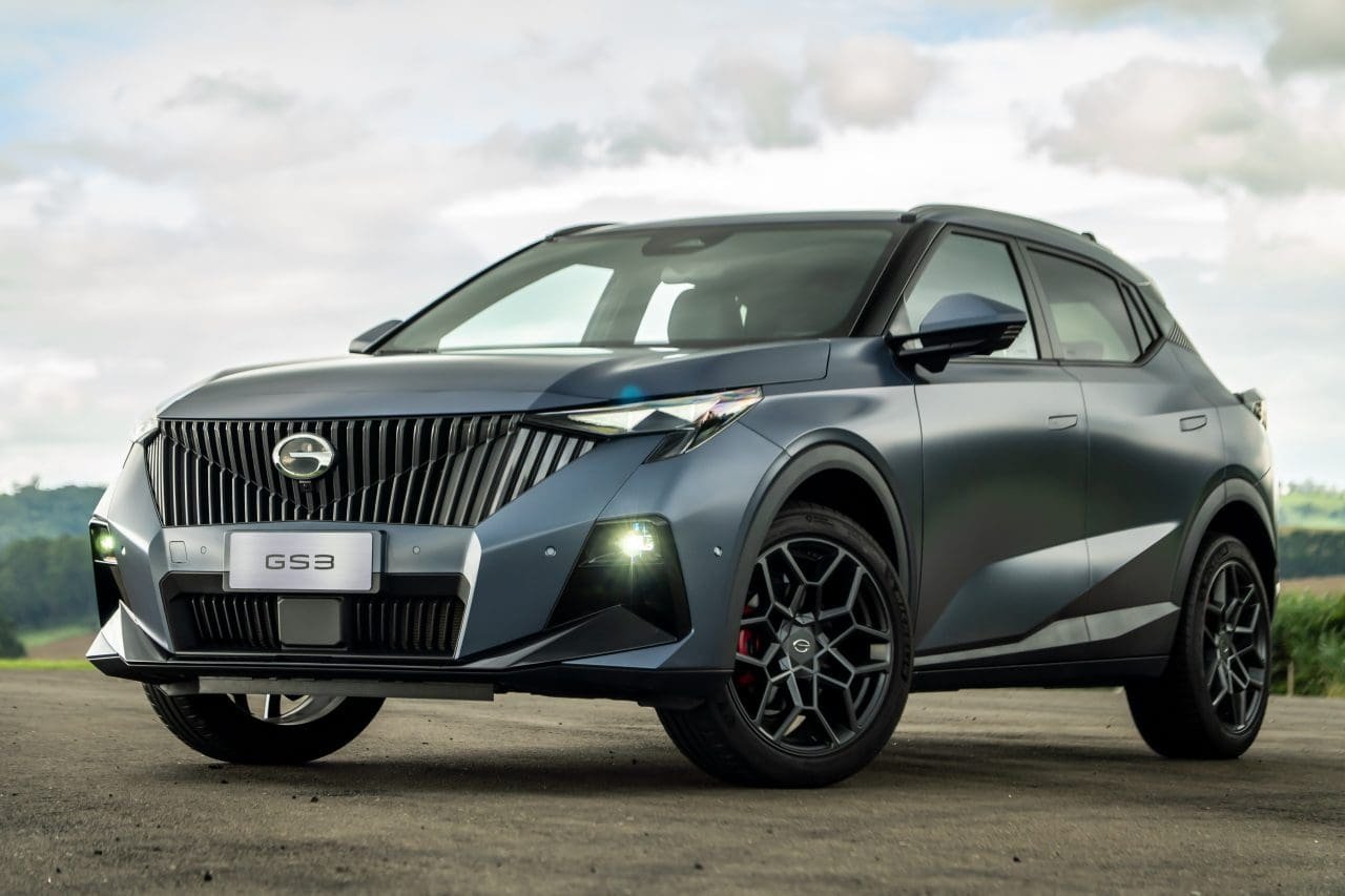 O GAC GS3 finalmente chegou ao Brasil, como primeiro modelo da marca sem eletrificação. Trata-se de um SUV compacto quase médio, que aposta no visual arrojado e esportivo, e nos preços atraentes: a versão Premium sai por R$ 130 mil (promocionais de lançamento – depois sobe para R$ 140 mil), e a Elite custa R$ 160 mil. Sua meta é clara: incomodar desde SUVs pequenos, como VW Tera, até médios, como Jeep Compass.