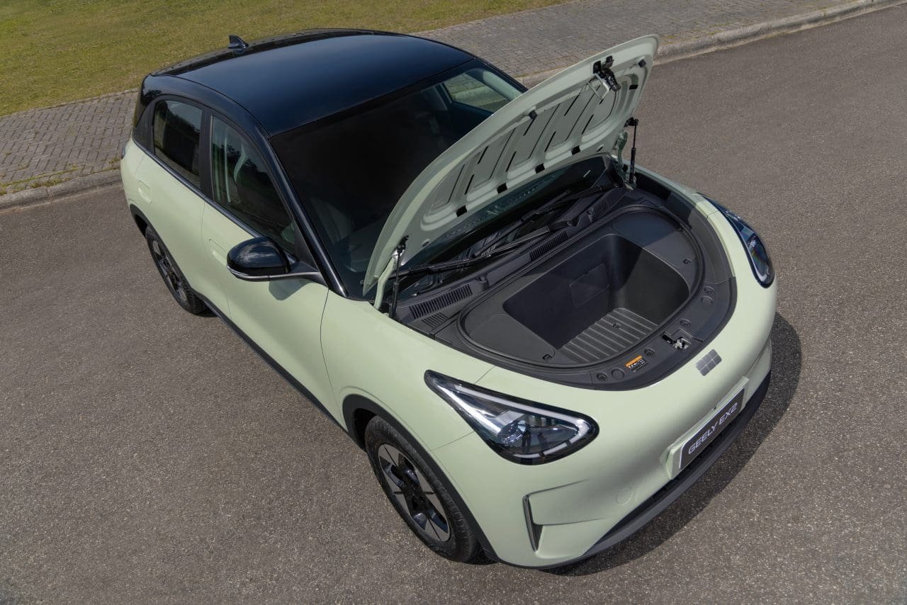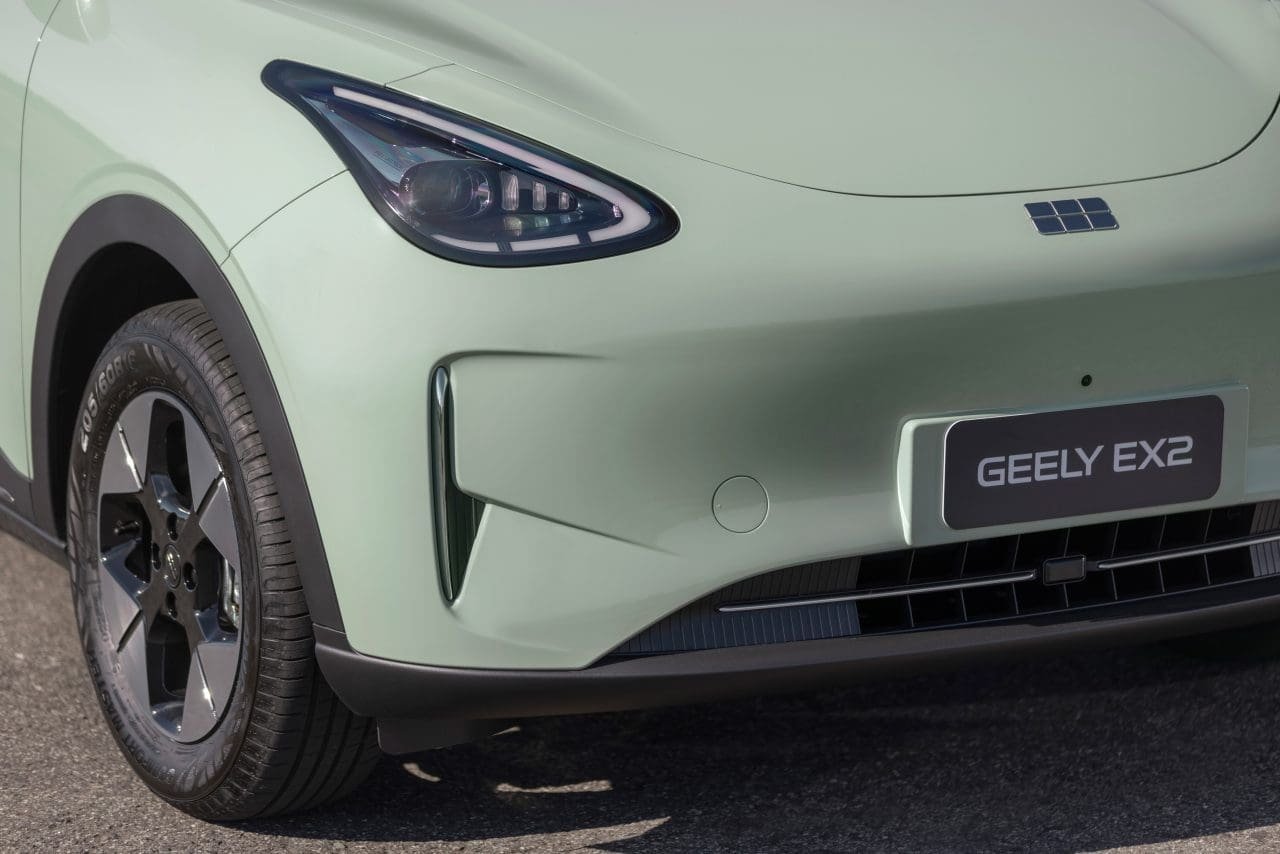 O Geely EX2 segue uma receita de design parecida com a do Dolphin GS: é “gordinho”, arredondado, limpo e com pegada moderna. Aposta na frente curta, linhas fluídas e teto alto, lembrando um monovolume, mais ou menos à lá Honda Fit. Inclusive nas dimensões, se aproxima do rival da BYD, com 4,13 m de comprimento, 1,80 m de largura, 1,57 m de altura e entre-eixos de 2,65 m (mesmo de um T-Cross). Um dos seus diferenciais é trazer porta-malas dianteiro adicional de 70 litros, mais 375 do traseiro.
