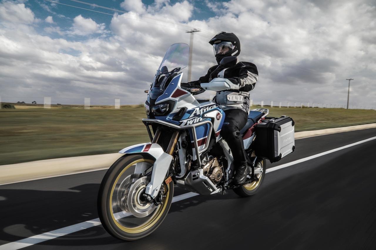 Até então equipada exclusivamente com roda de 21”, a Africa Twin muda o foco e assume uma proposta mais asfáltica, com comportamento mais estável em altas velocidades e maior conforto para viagens longas. Com isso, o conjunto de suspensões também foi revisto. O curso agora é de 210 mm na dianteira e 200 mm na traseira, enquanto a distância mínima do solo ficou em 220 mm. As versões MT e DCT “convencionais” mantêm a vocação off-road, com roda de 21”, curso maior e vão livre de 250 mm.