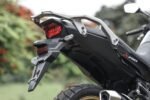 O chassi é uma estrutura em aço tipo Diamond com subchassi integrado, peso de 18,3 kg e geometria pensada para equilibrar agilidade e estabilidade. A suspensão dianteira é Showa SFF-CA, com garfo invertido de 43 mm e 200 mm de curso. Atrás, o monoamortecedor Pro-Link oferece 190 mm. As rodas raiadas de 21 e 18 polegadas usam pneus 90/90-21 e 150/70-18. A frenagem traz dois discos de 310 mm na dianteira e disco de 256 mm na traseira.