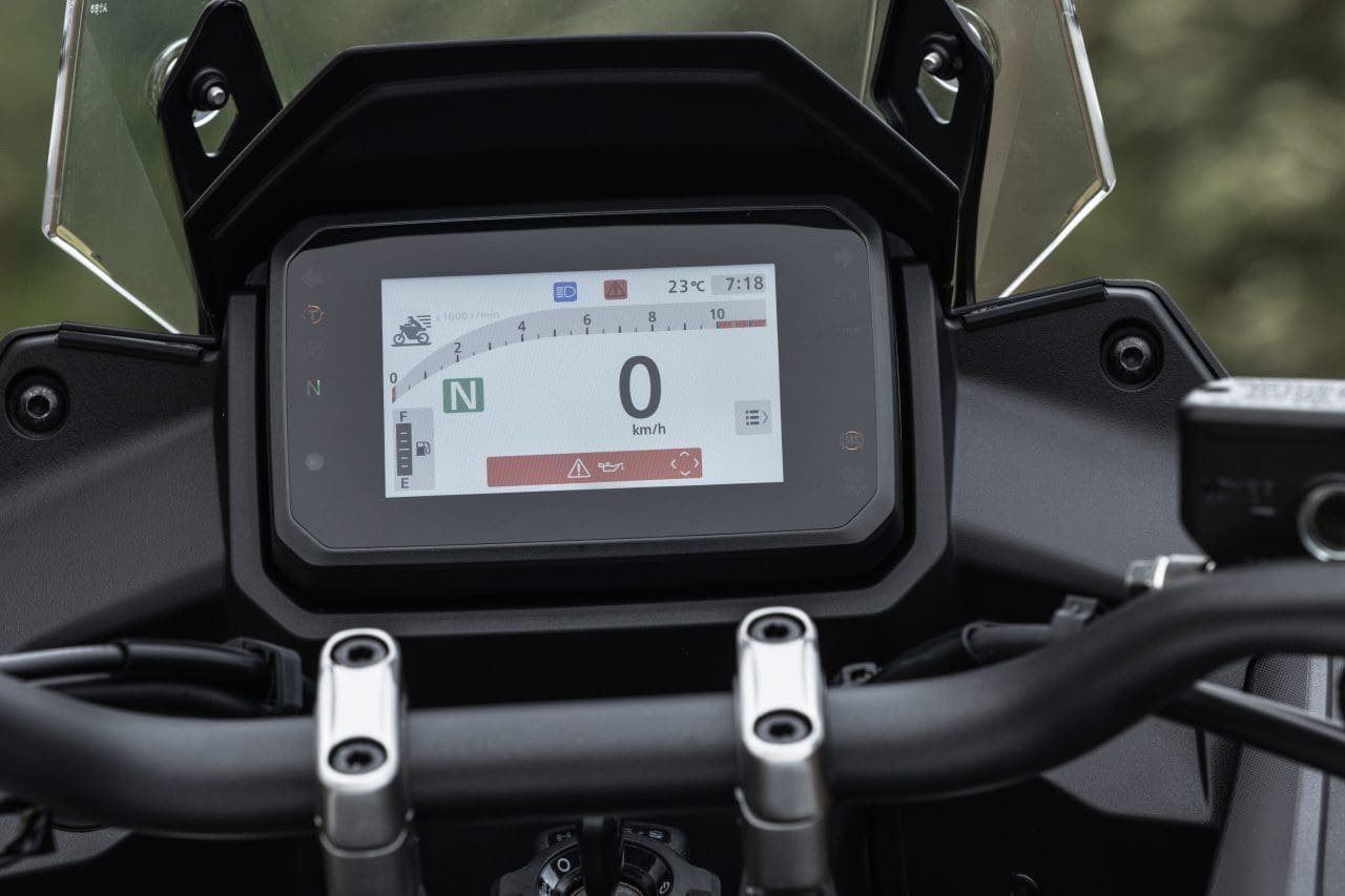 O visual segue a proposta tradicional de uma bigtrail moderna, com assento de 855 mm de altura e a posição de pilotagem padrão, com facilidade para ficar em pé. O modelo traz, de série, painel de instrumentos digital de 5″, iluminação dos botões no punho esquerdo, bagageiro traseiro, entrada USB sob o banco, alerta de frenagem de emergência (ESS), conjunto óptico em LED, parabrisa Durabio, e eletrônica com cabeamento CAN simplificado.