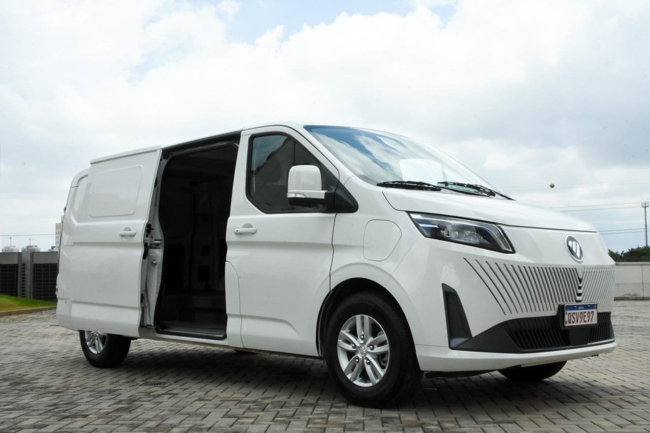 Nessa tacada de sete novos veículos comerciais elétricos que a Foton lançou no Brasil, está o eView Grand, um furgão médio disponível com dois tamanhos de teto, que tem preço inicial de R$ 300 mil. Embora seja fruto de um projeto mais antigo, e tradicional, que seu irmão eView Connect, o Grand, como o próprio nome diz, é maior e mais espaçoso. E isso vale tanto para a carga no baú, quanto para motorista e copiloto.