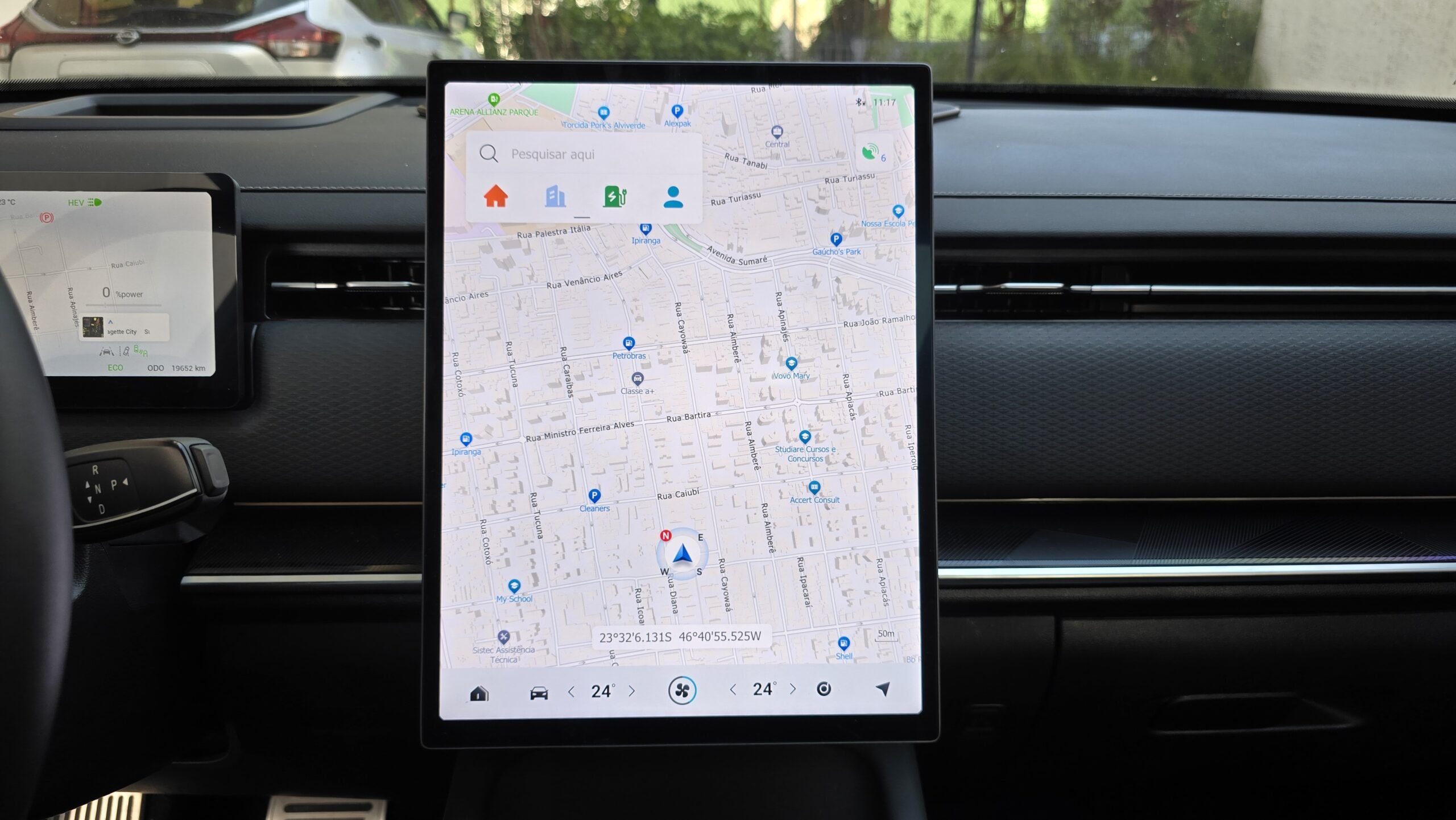 Ainda assim, há problemas de interface: os retrovisores são controlados só pela tela e o botão do ar no console é só para ativar o modo “Auto” ou desligá-lo. Se você quiser mudar um grau na temperatura, fechar a entrada de ar externo ou outras funções, precisa usar a tela central… Não antes de sair do Android Auto, se estiver usando, o que não é nada prático.
