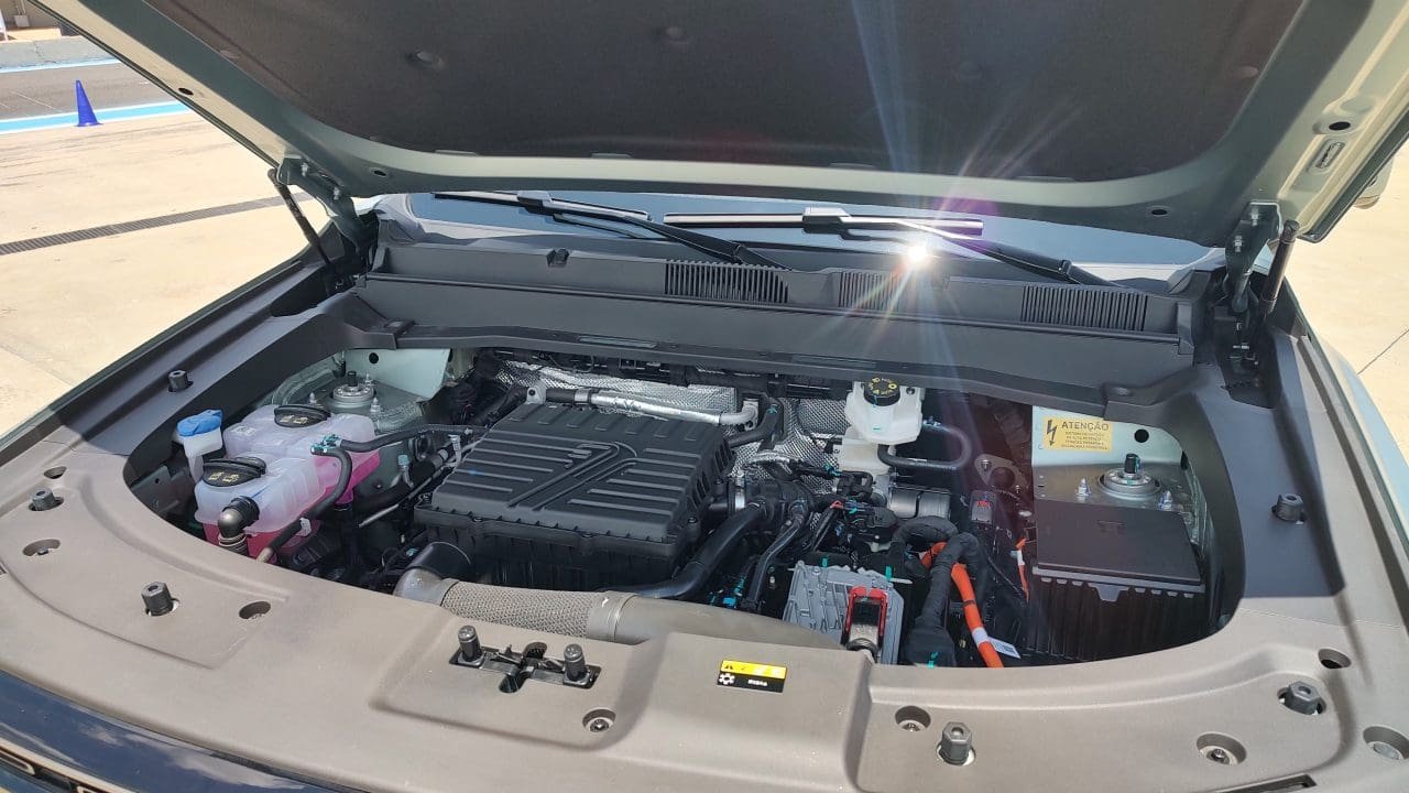 O Jetour T1, como se esperava, conta com o mesmo sistema híbrido plug-in oferecido no S06. O conjunto é composto por um motor elétrico e um 1.5 turbo a gasolina, que também deve se tornar flex, assim como no irmão. Em números, o propulsor a combustão entrega 135 cv de potência e 20,4 kgfm de torque. Já a unidade elétrica tem 204 cv e 31,6 kgfm. Tudo é gerenciado pelo câmbio automático dedicado 1-DHT. Resultado: 0 a 100 km/h em 8,7 segundos. A potência combinada é de 315 cv e o torque total chega a 52 kgfm.