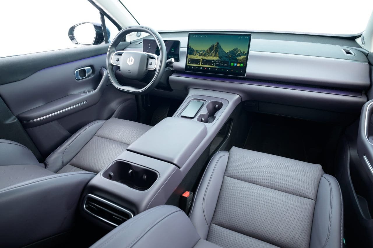Dentre os equipamentos de série, traz um enorme pacote de assistentes de condução (ADAS), 7 airbags, bancos em couro sintético, multimídia de 14,6” conectada com a internet, conexão com app Leapmotor (comandos à distância pelo celular), ar digital automático dual zone com saídas traseiras, filtro purificador de cabine, teto-solar panorâmico, sistema de som com 840 Watts e 12 alto-falantes, câmeras 360º, iluminação interna e externa totalmente em LED, rodas aro 20, entre outros.