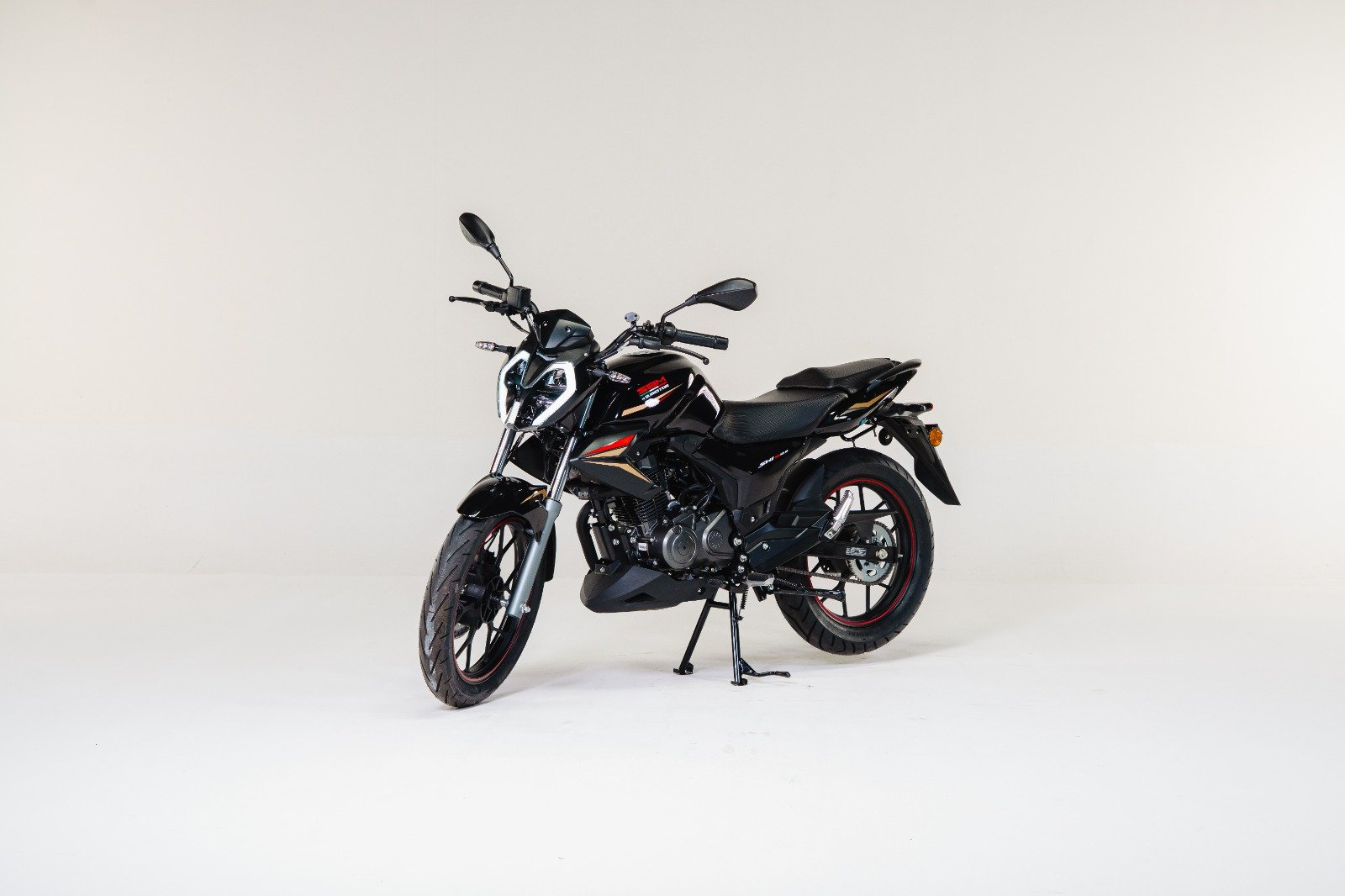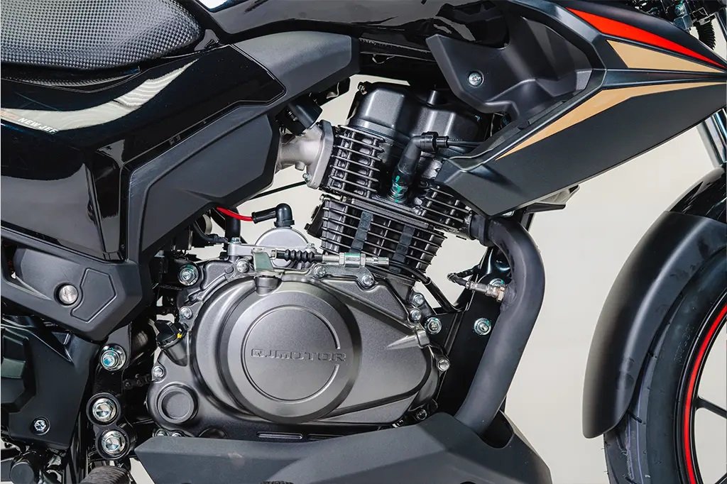 Seu motor é um 149 cm³ (150), com 12,3 cv de potência (8.500 rpm) e 1,14 mkgf de torque (6.500 rpm), que bebe apenas gasolina e está acoplado a uma transmissão convencional de 5 marchas. Seu tanque de combustível comporta 14,5 litros.