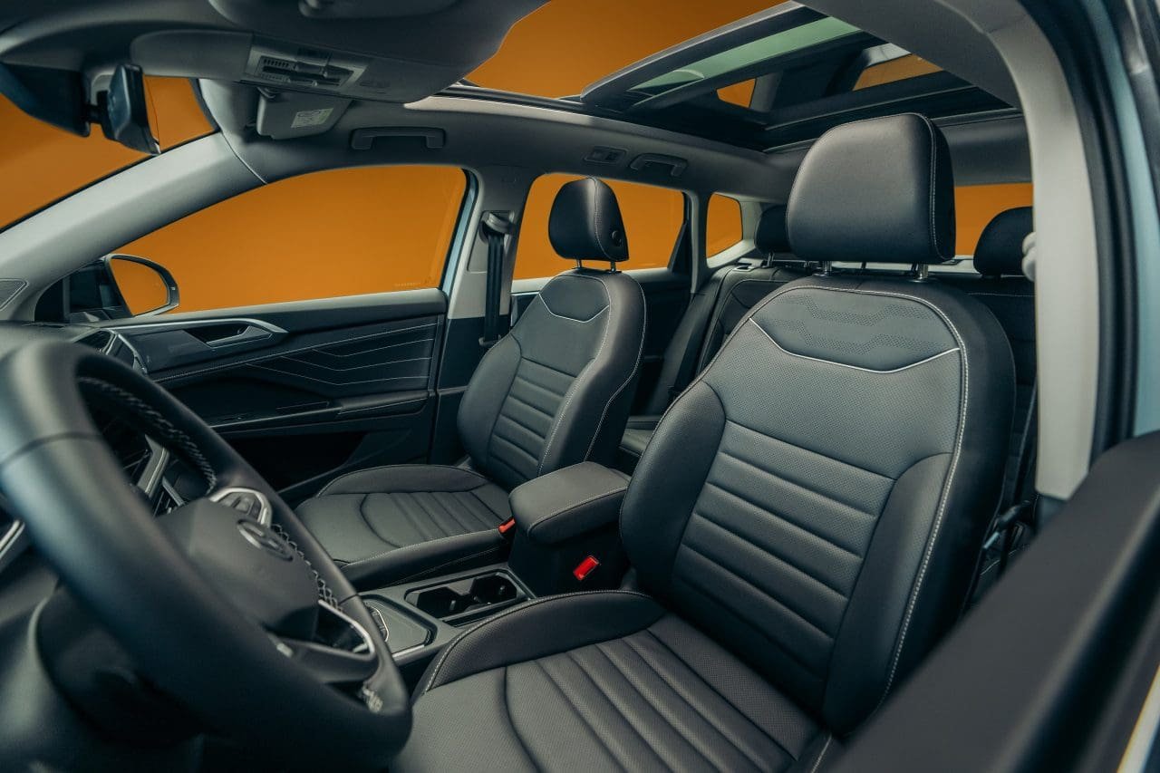 No geral, o desenho básico da cabine ainda é o mesmo do modelo anterior, incluindo bancos, laterais de portas, painel e volante. Porém, o conjunto passa por mudanças nas forrações, acabamentos, cores de materiais, texturas e afins. Mais ou menos o processo que passou o compacto T-Cross na sua reestilização para a linha 2024. Curiosamente, boa evolução é a volta dos botões físicos para o volante, em substituição aos touch utilizados até então, que não agradaram os consumidores.