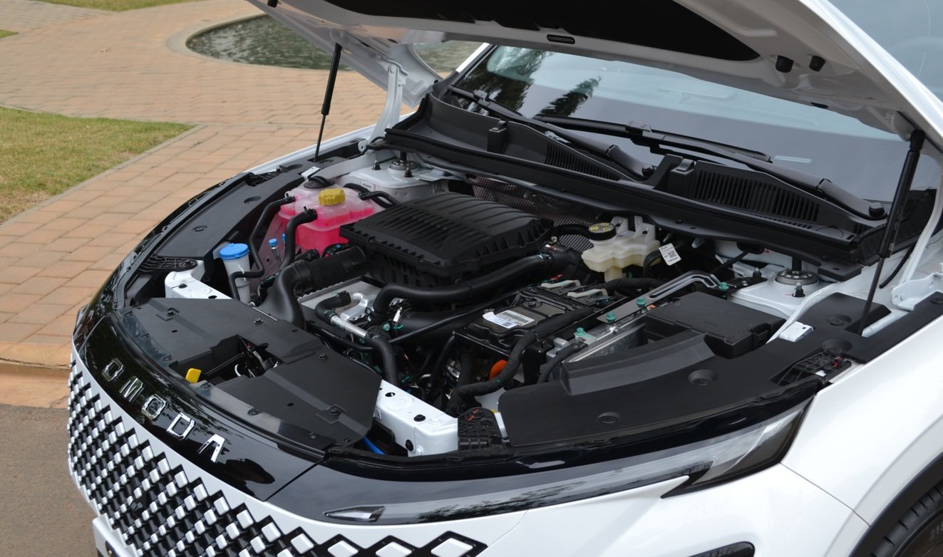Entretanto, a dianteira é exclusiva com grade própria e que “assusta” menos em termos de design. A grade frontal tem entradas de ar para arrefecimento do motor 1.5 turbo a gasolina de 135 cv, que trabalhará em conjunto com um motor elétrico dianteiro de 204 cv, rendendo 224 cv de potência e 30,1 kgfm de torque combinados. Sua bateria de tração tem 1,83 kWh. A transmissão é automática DHT, que gerencia os propulsores.