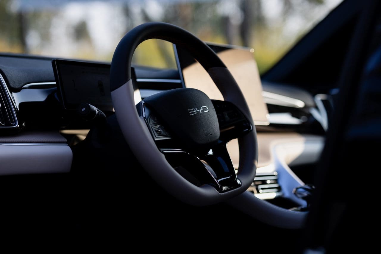 Mais: tampa do porta-malas com abertura/fechamento elétricos, retrovisores externos com rebatimento elétrico e aquecedor, comandos de voz (“Hi BYD”), ar-condicionado digital automático dual zone com saídas traseiras, possibilidade de uso de chave digital (NFC), entre outros equipamentos.