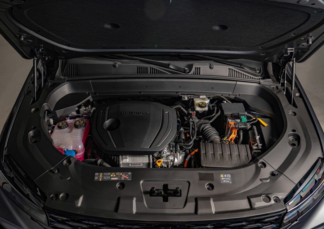 A aposta é na tração dianteira, com um motor 1.5 turbo a gasolina sob o capô, somado a dois motores elétricos (um principal, e outro secundário), ambos acoplados na transmissão automática DHT com três marchas. Fórmula bem convencional dentre os híbridos tradicionais (HEV), em especial chineses, que no Koleos rende 245 cv de potência e torque total ao redor dos 54 mkgf (somando combustão e eletricidade). No pacote ainda está uma bateria de 1,64 kWh de capacidade, que, segundo a Renault, permite que o SUV rode 75% dos percursos urbanos no modo 100% elétrico.