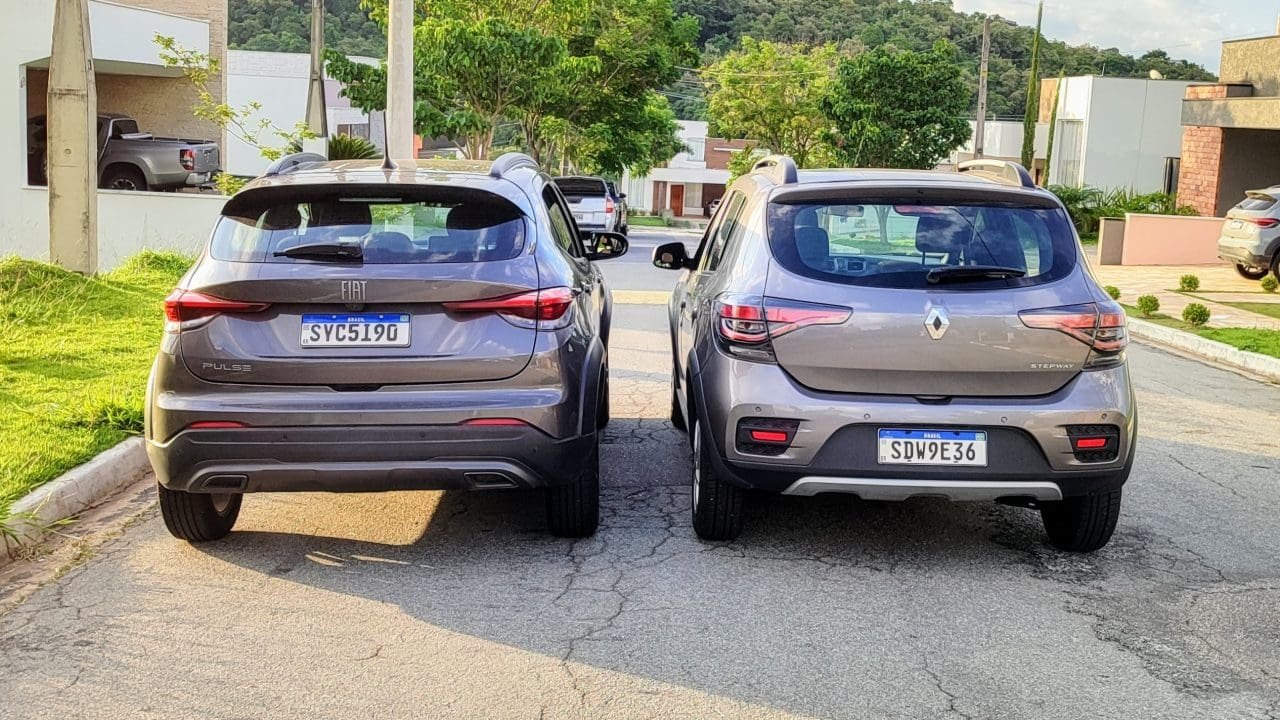 Colocados lado a lado, um Renault Stepway (hatch) e um Fiat Pulse (SUV) até compartilham alguns elementos visuais. Ambos exibem molduras plásticas nas caixas de roda, racks no teto e para-choques com desenho mais agressivo. As semelhanças, porém, param por aí. O Stepway mantém proporções típicas de hatch, com cerca de 14 cm de altura livre do solo. O Pulse, por sua vez, chega perto dos 19 cm, além de adotar linha de cintura mais elevada, para-lamas mais marcados e uma dianteira mais alta e reta, reforçando a sensação de utilitário.