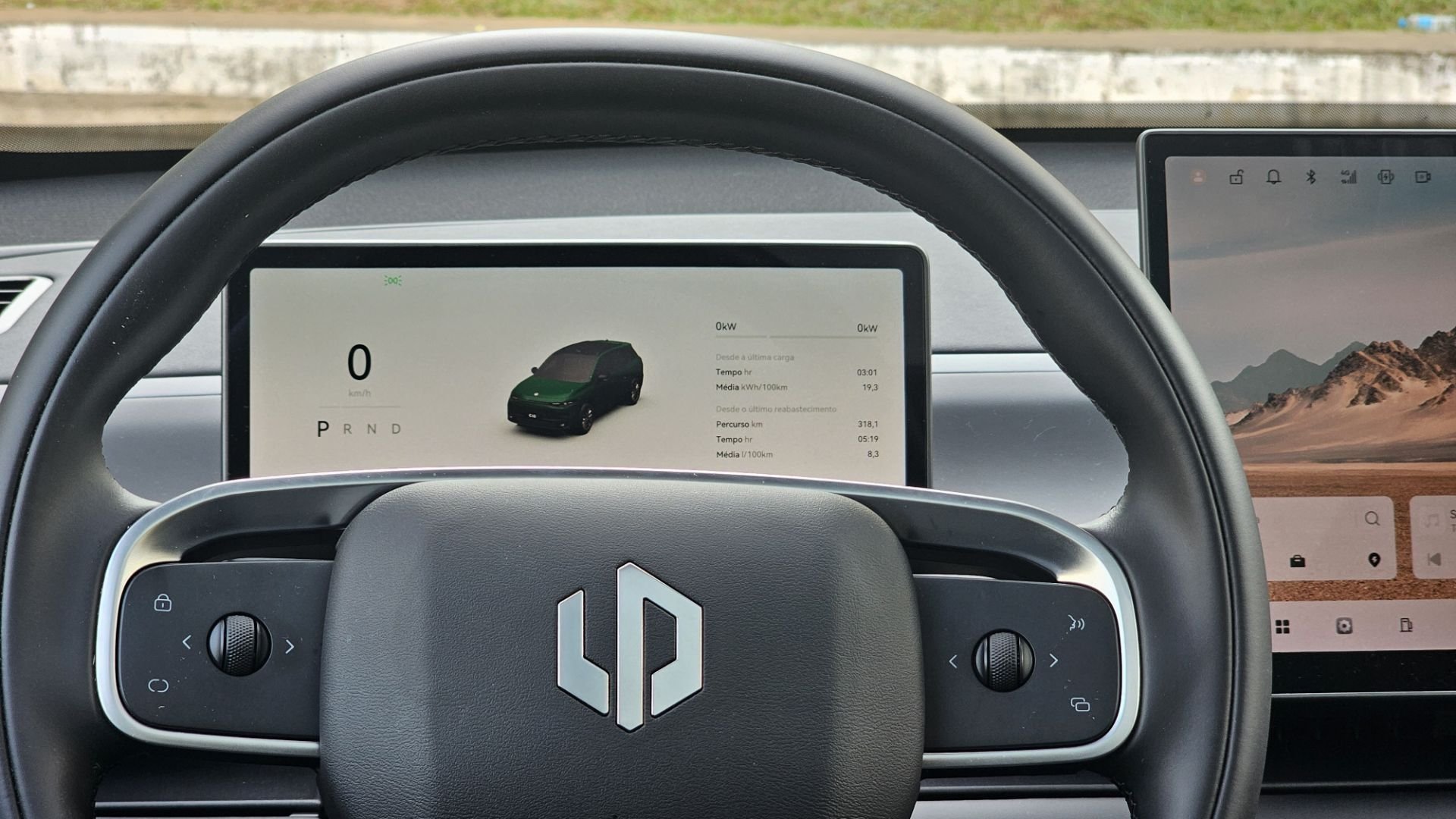 A tela central mostra a rotação do motor a gasolina funcionando como gerador, quando fica sempre na faixa de 1.500 rpm, mas sobe até 3.500 a 4.000 rpm em ladeiras íngremes – e, mesmo assim, o C10 mostra uma notável falta de força.