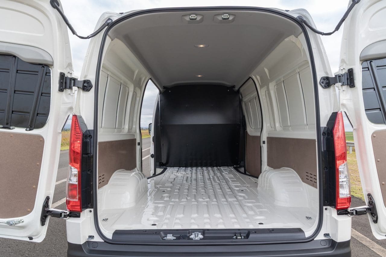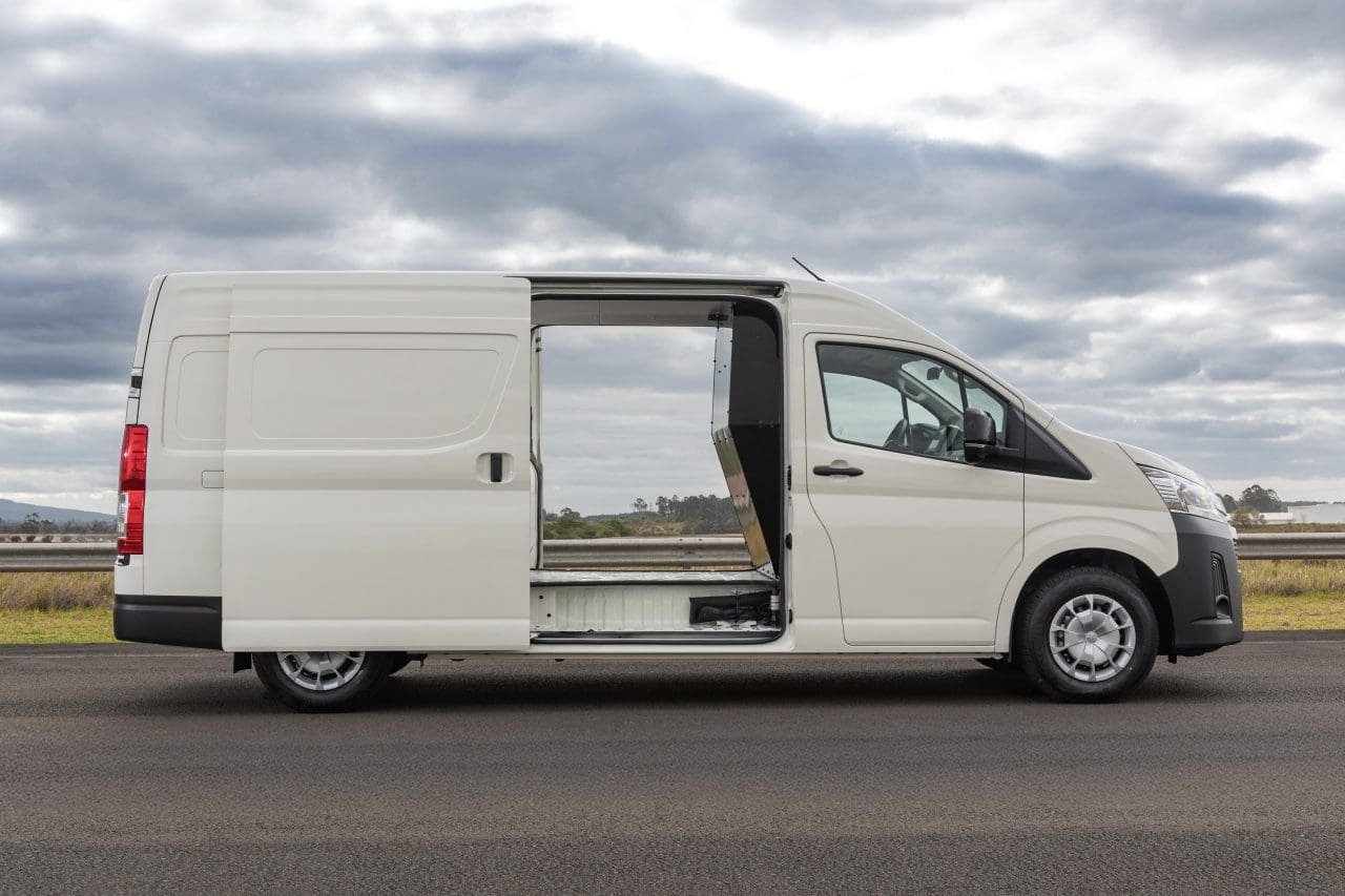 Nessa configuração para levar carga, a Hiace tem capacidade de transportar até 1.055 kg, e seu baú tem aproximadamente 9.300 litros, com acesso por quatro portas: duas laterais corrediças e traseira bipartida. Com isso, ela acaba ficando exatamente no meio do caminho entre as vans menores como Fiat Scudo ou Citroën Jumpy (6.100 litros) e maiores, como a Fiat Ducato Furgão (começa em 11.500 litros).