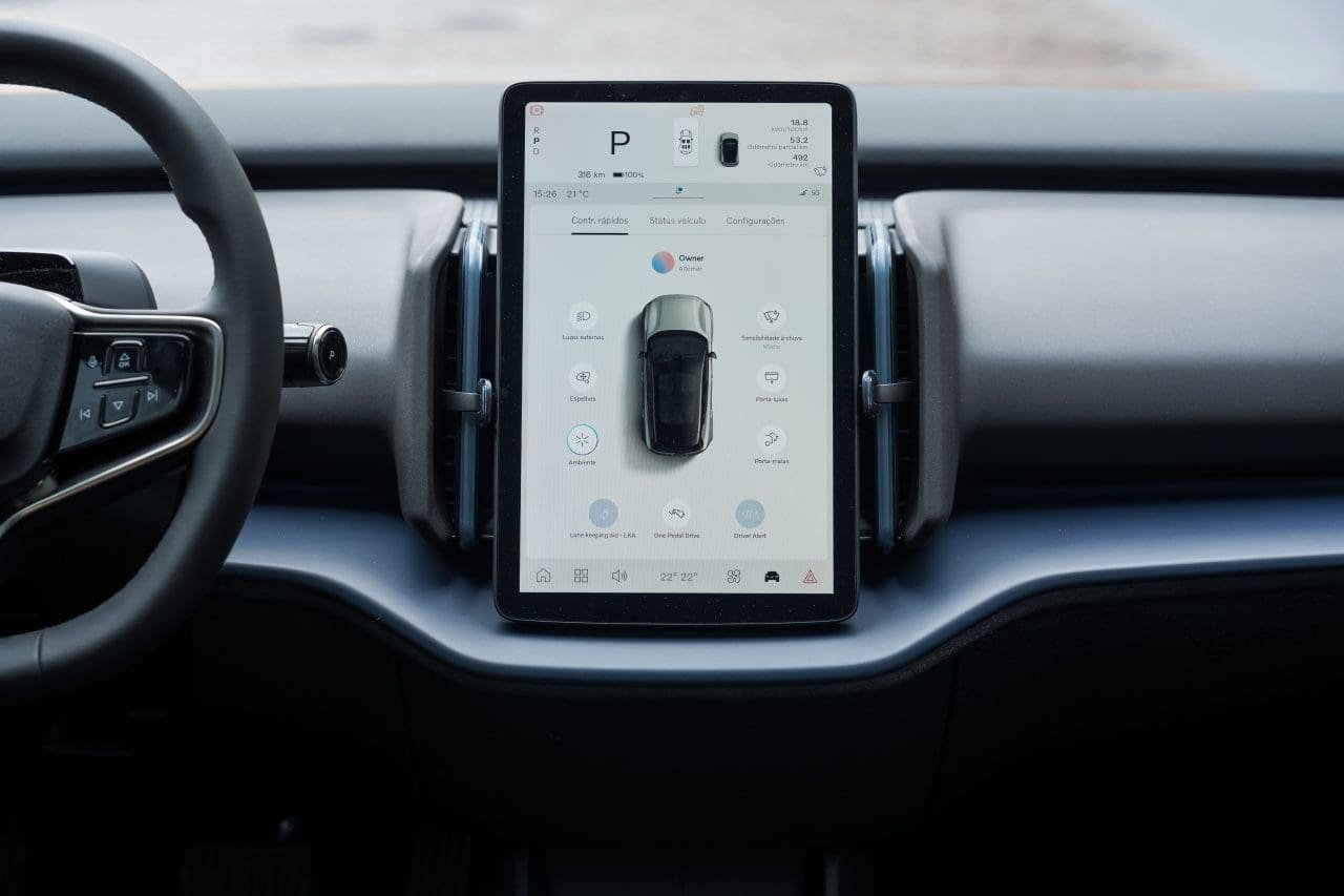 No mais, a Volvo do Brasil comemora que esse novo EX30 Ultra Twin Motor é o carro mais rápido que eles já venderam por aqui, disparado. É, também, o Volvo mais rápido de produção em série no mundo. Como ele se diferencia dos Ultra Single Motor, com apenas um motor? Basicamente, só com uma nova opção de cor de carroceria, num tom de areia metálico, além do emblema traseiro indicando a motorização mais potente. Design de carroceria, rodas, equipamentos, tecnologias, acabamentos e minimalismos? Os mesmos de sempre.