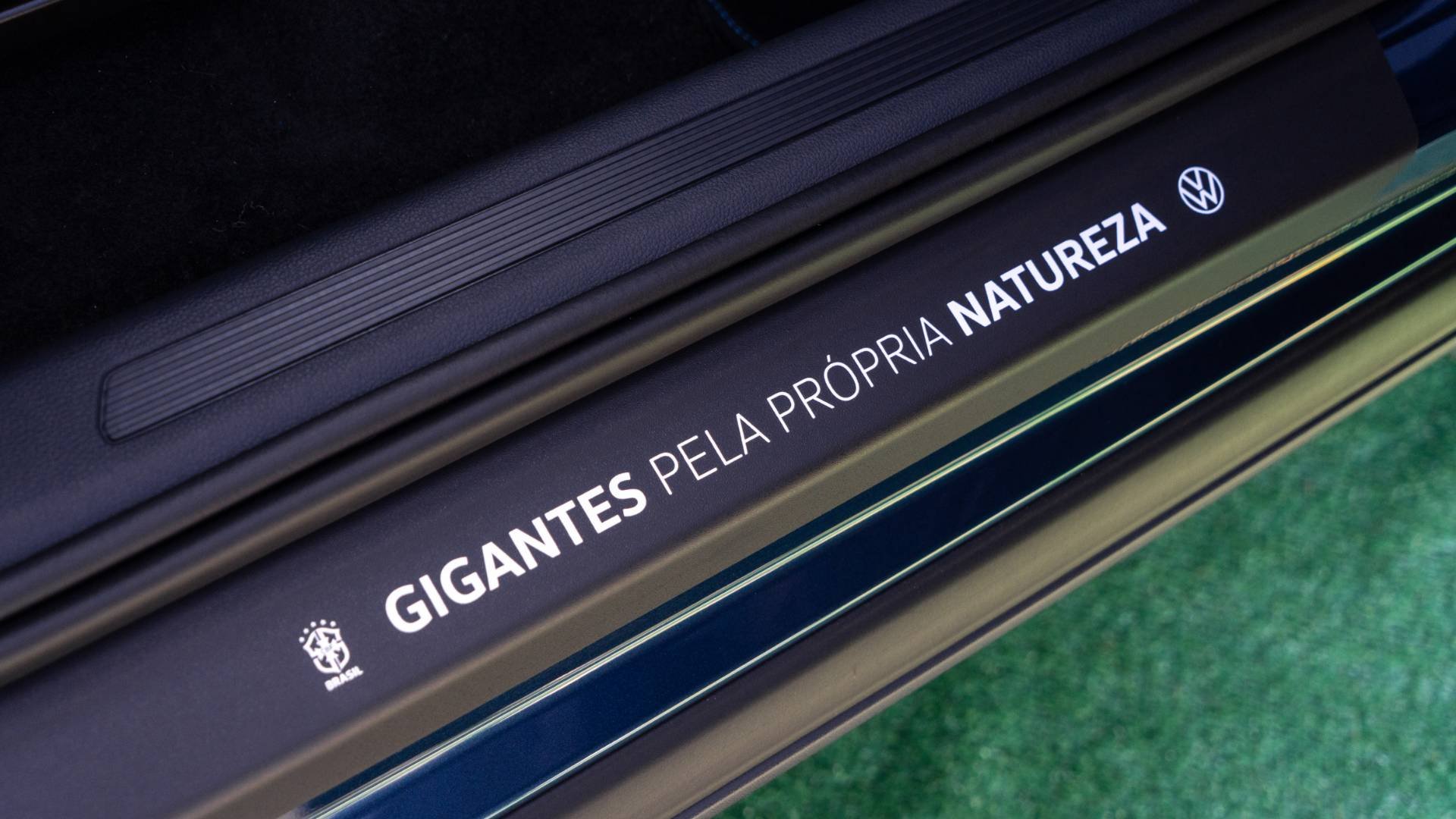 Completam o pacote as soleiras exclusivas da CBF com “easter eggs”: as formações das seleções campeãs do lado do motorista e os logos Seleção e VW unidos pela frase “gigantes pela própria natureza” do lado de passageiro.